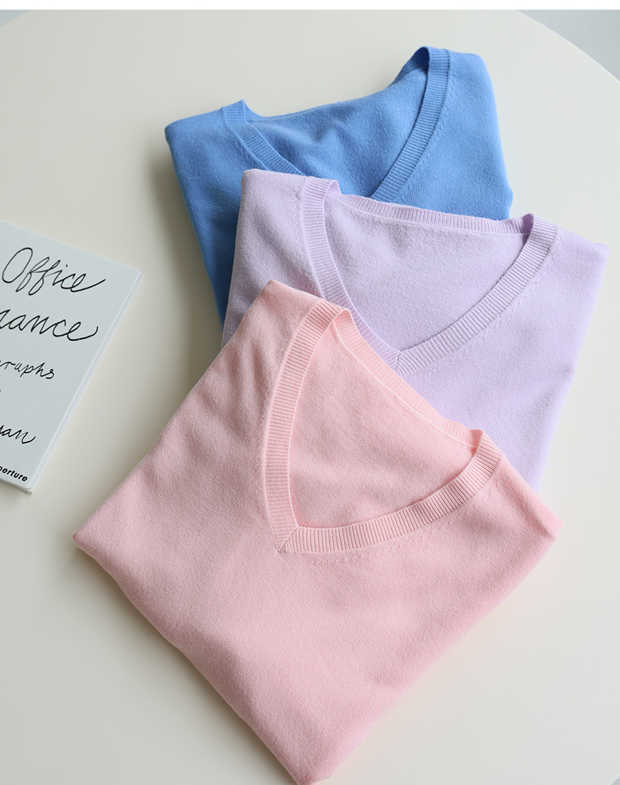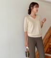 갸름한 페이스 라인을 연출하는 V넥으로