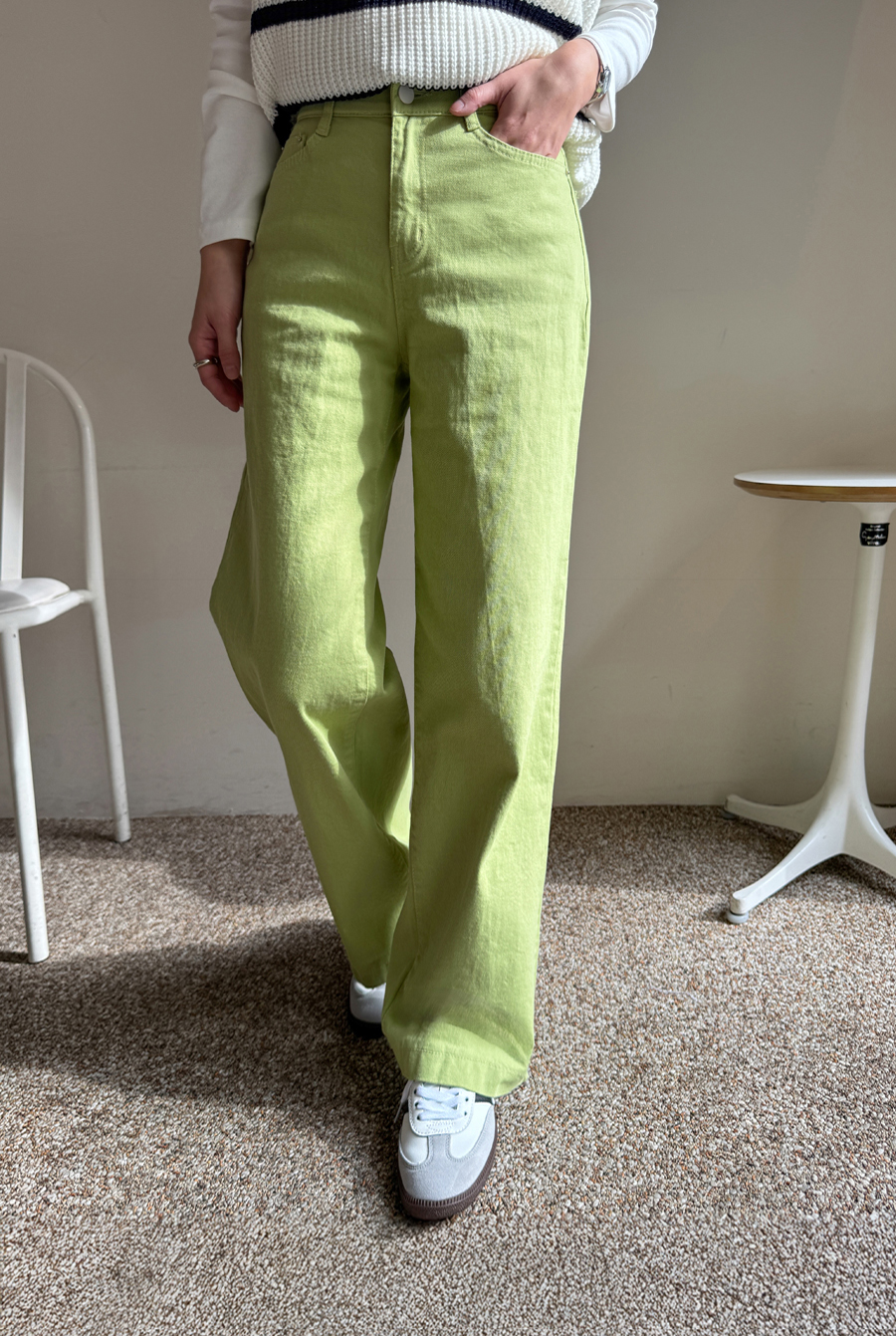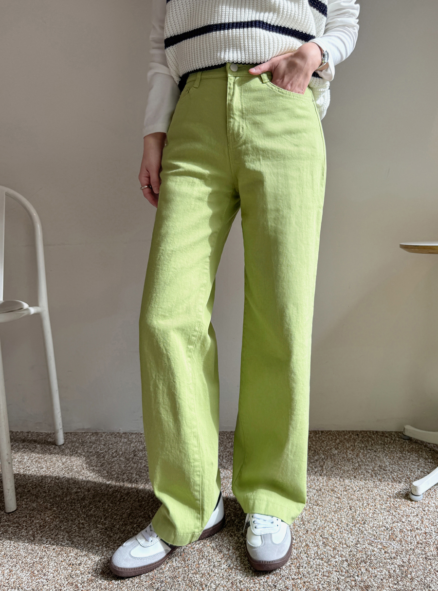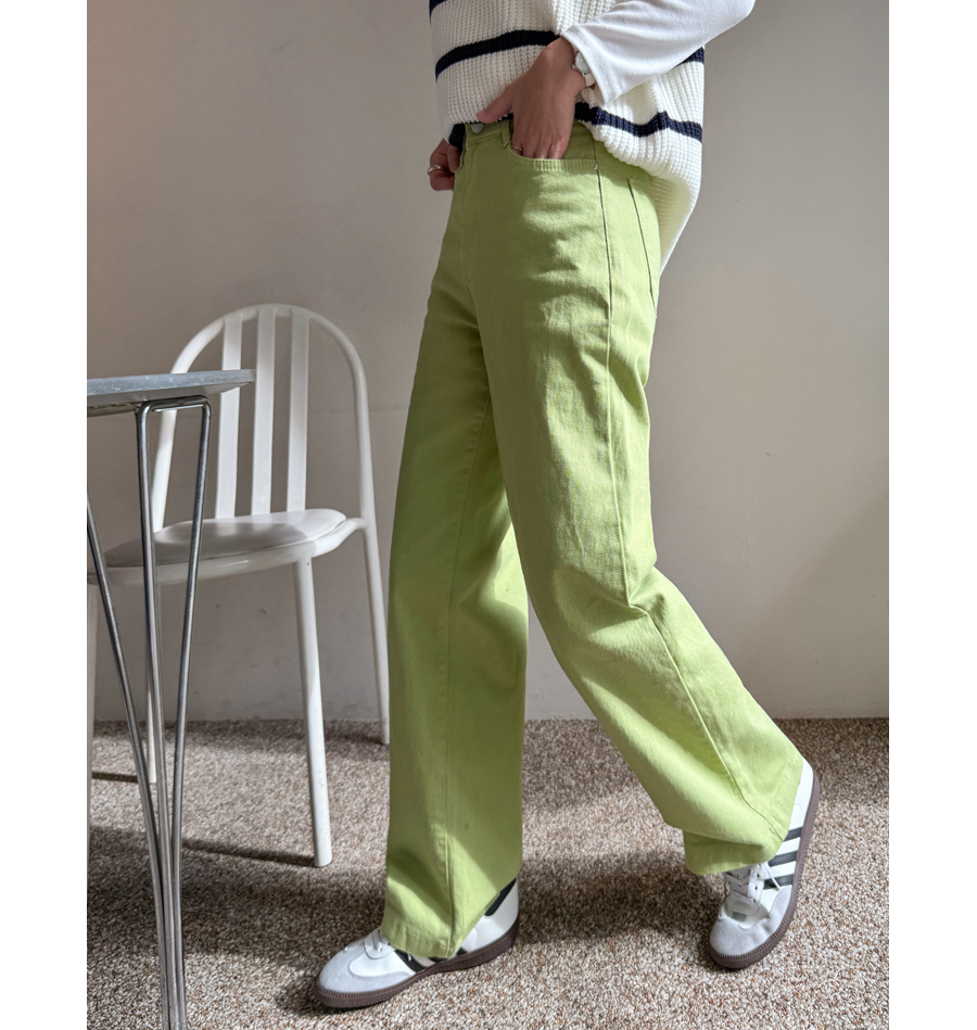 화사한 컬러감이 돋보이는 일자핏 와이드 팬츠