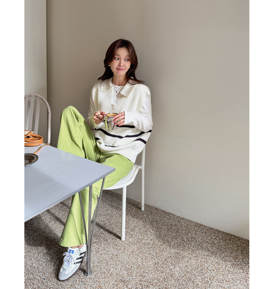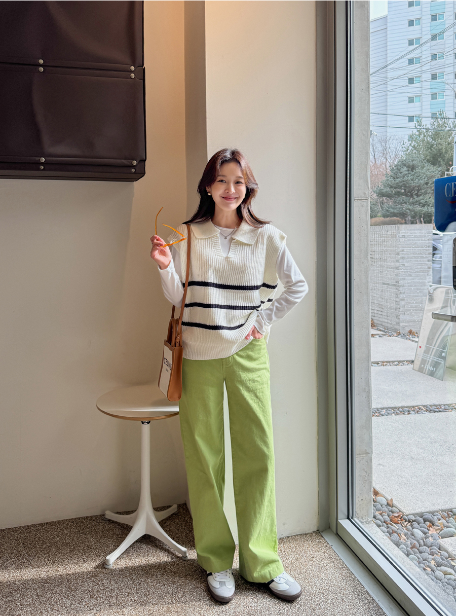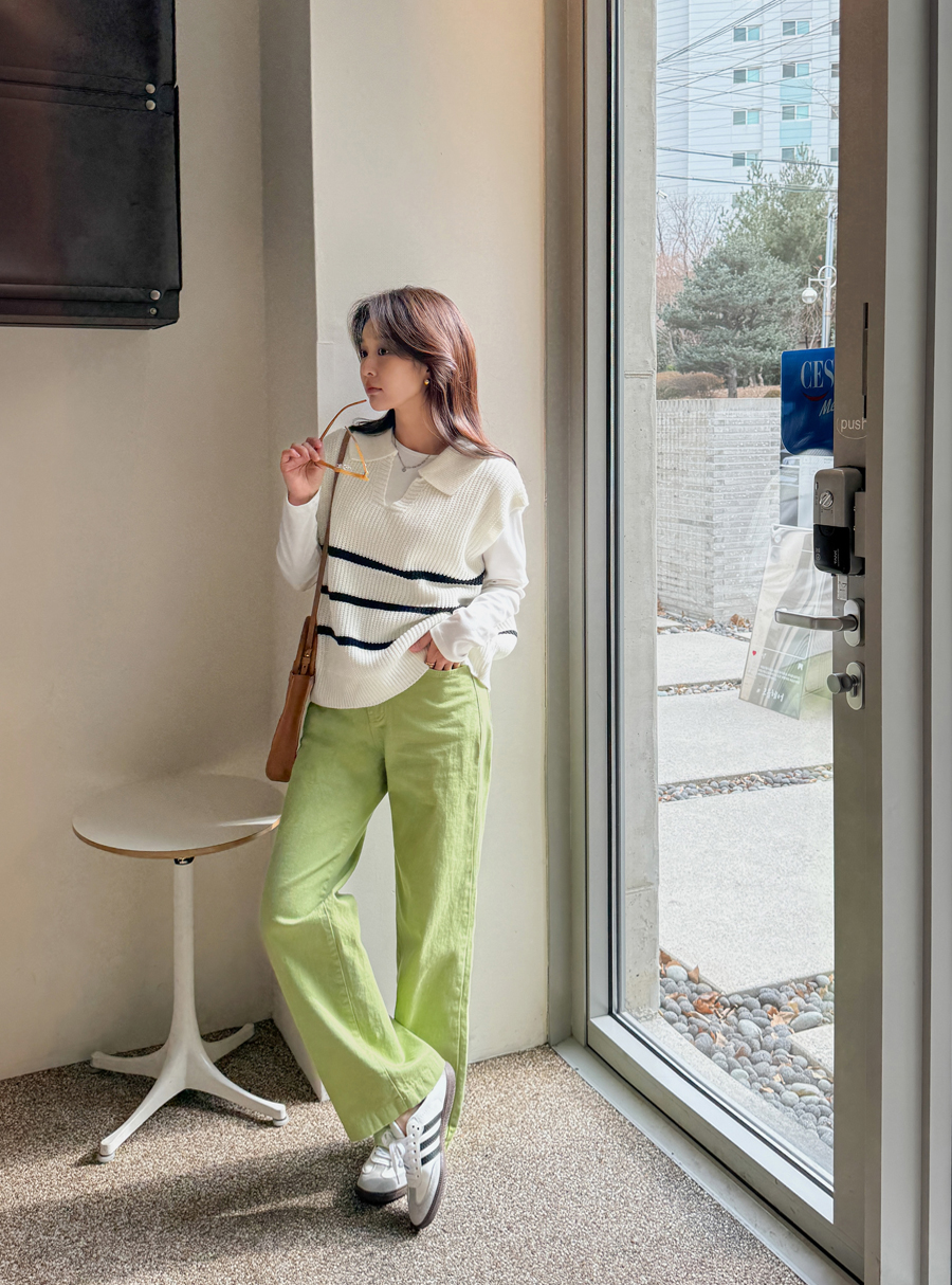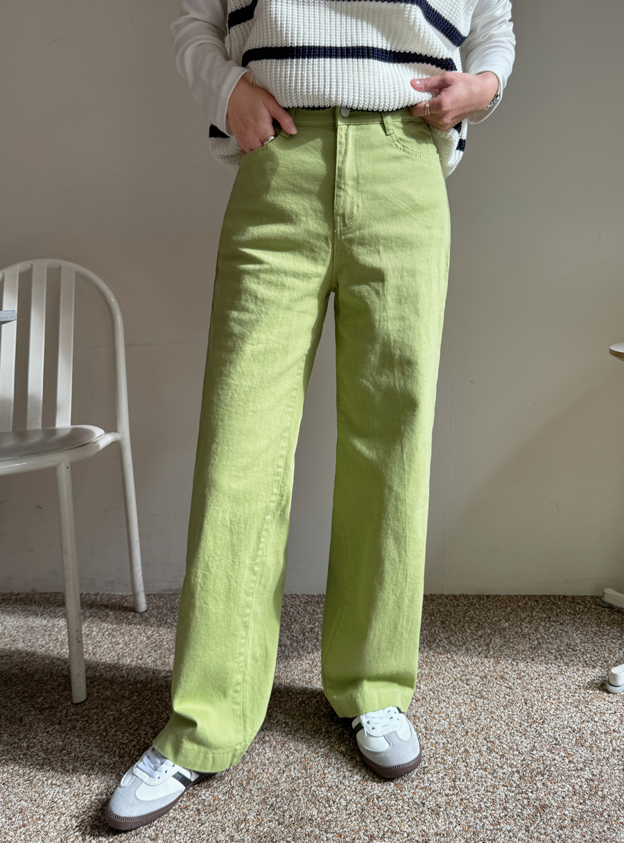 화사한 컬러감이 돋보이는 일자핏 와이드 팬츠