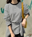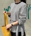 カジュアルなルックにポイントトークトーク-気分まで軽快になるストライプトレーナー (2color)