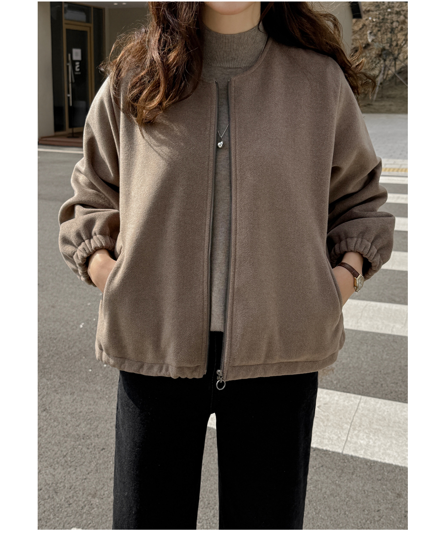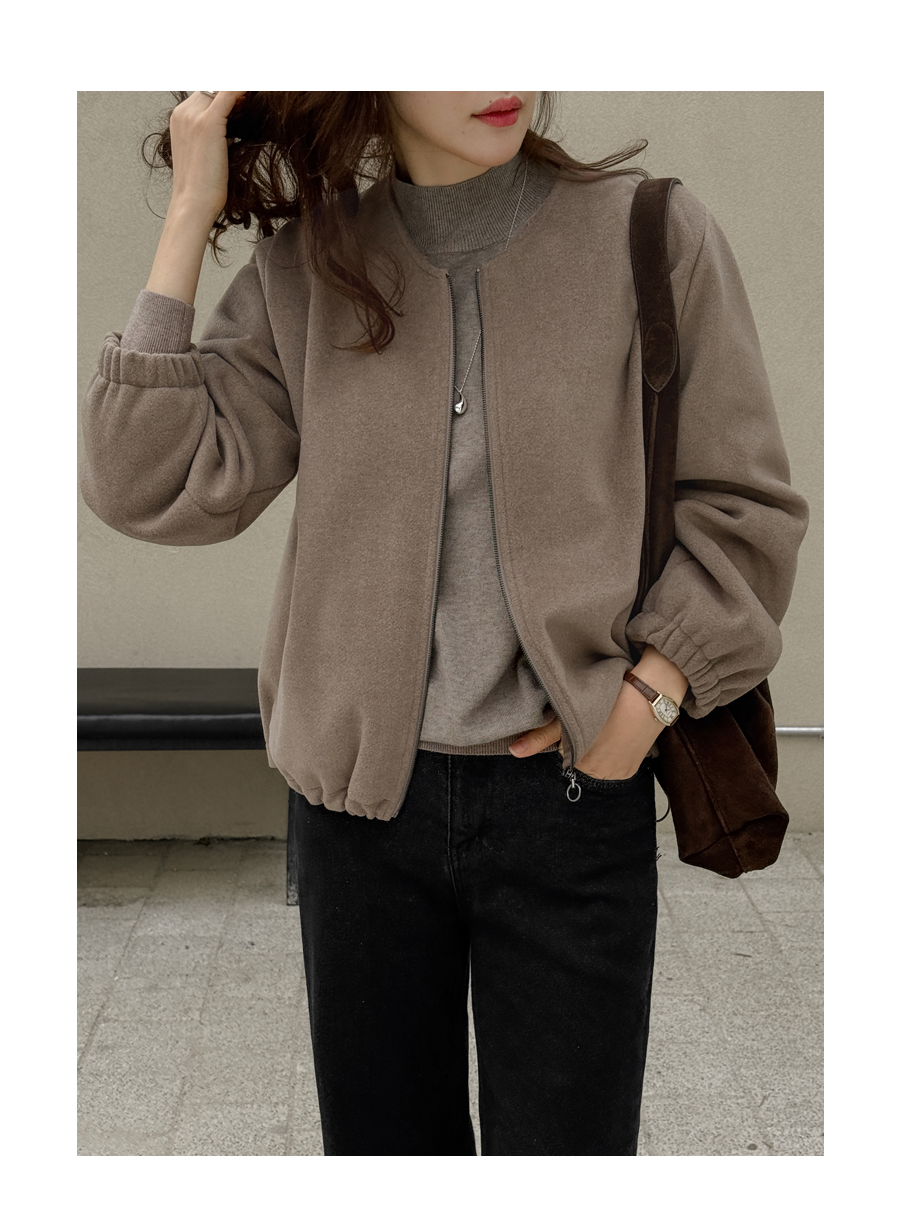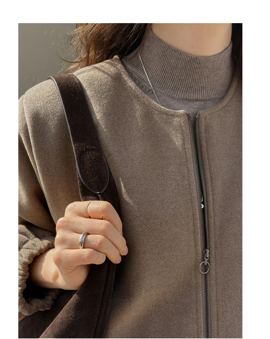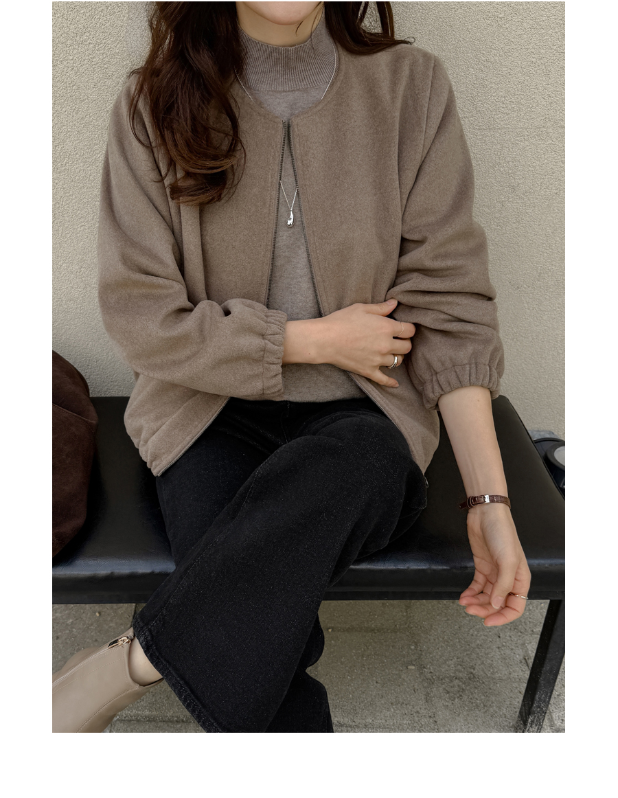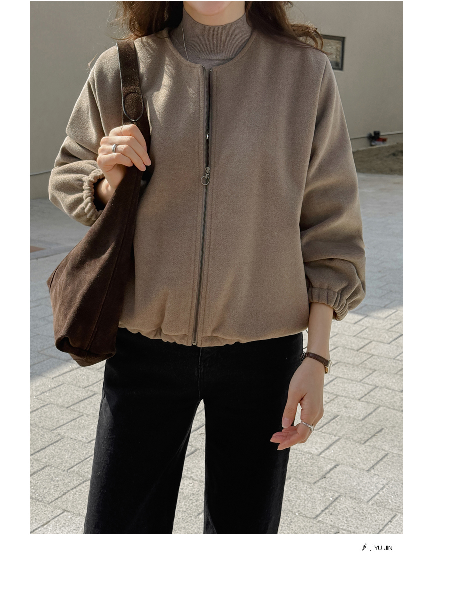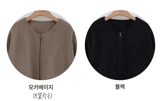 노카라 라운드넥에 지퍼로 열고 닫으며