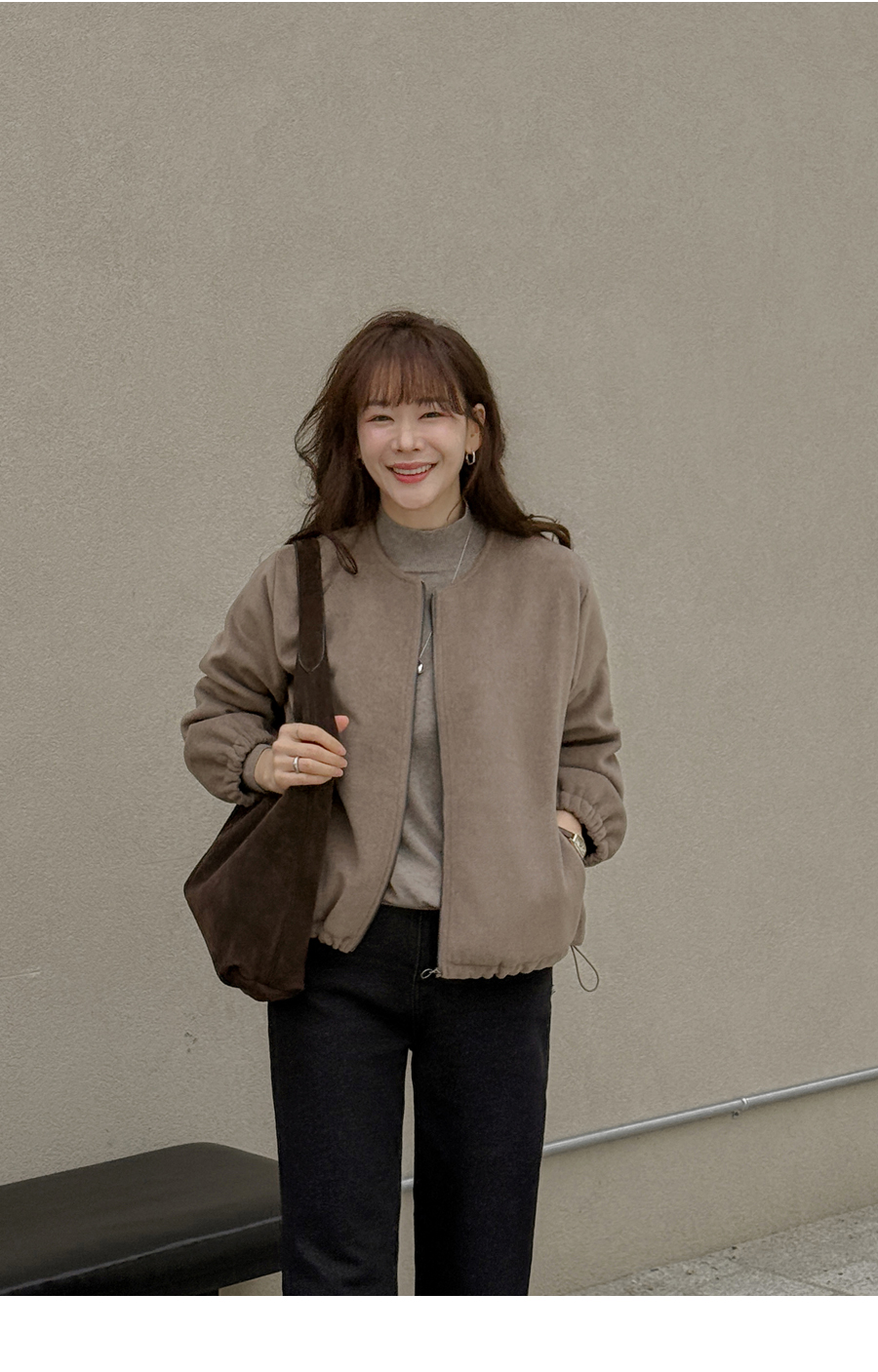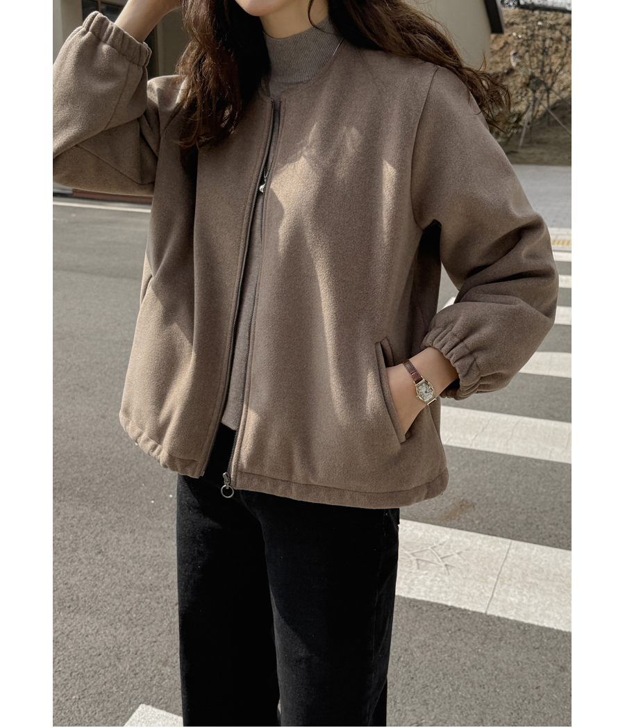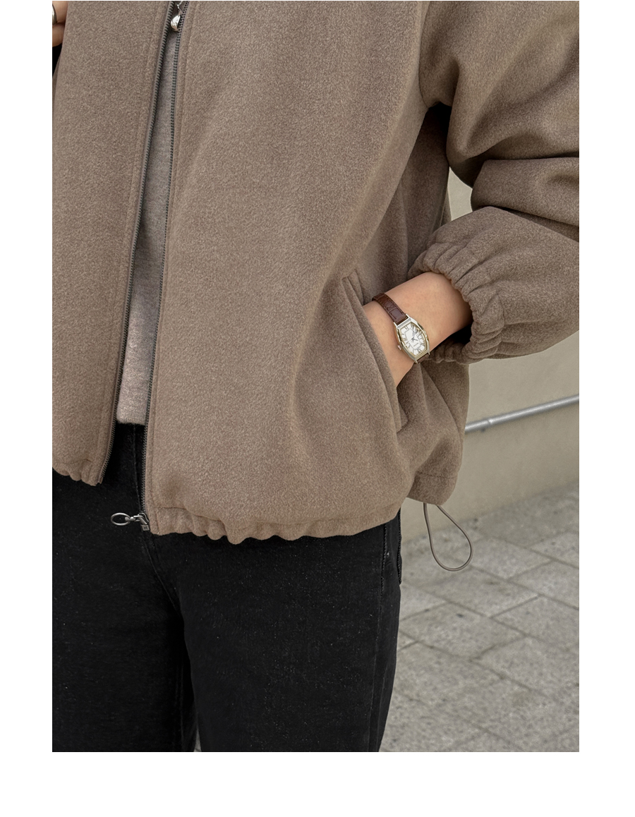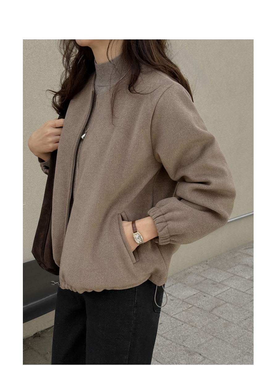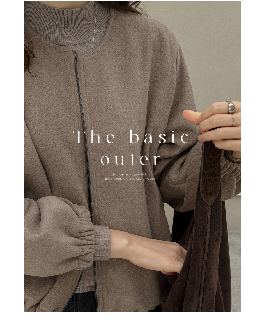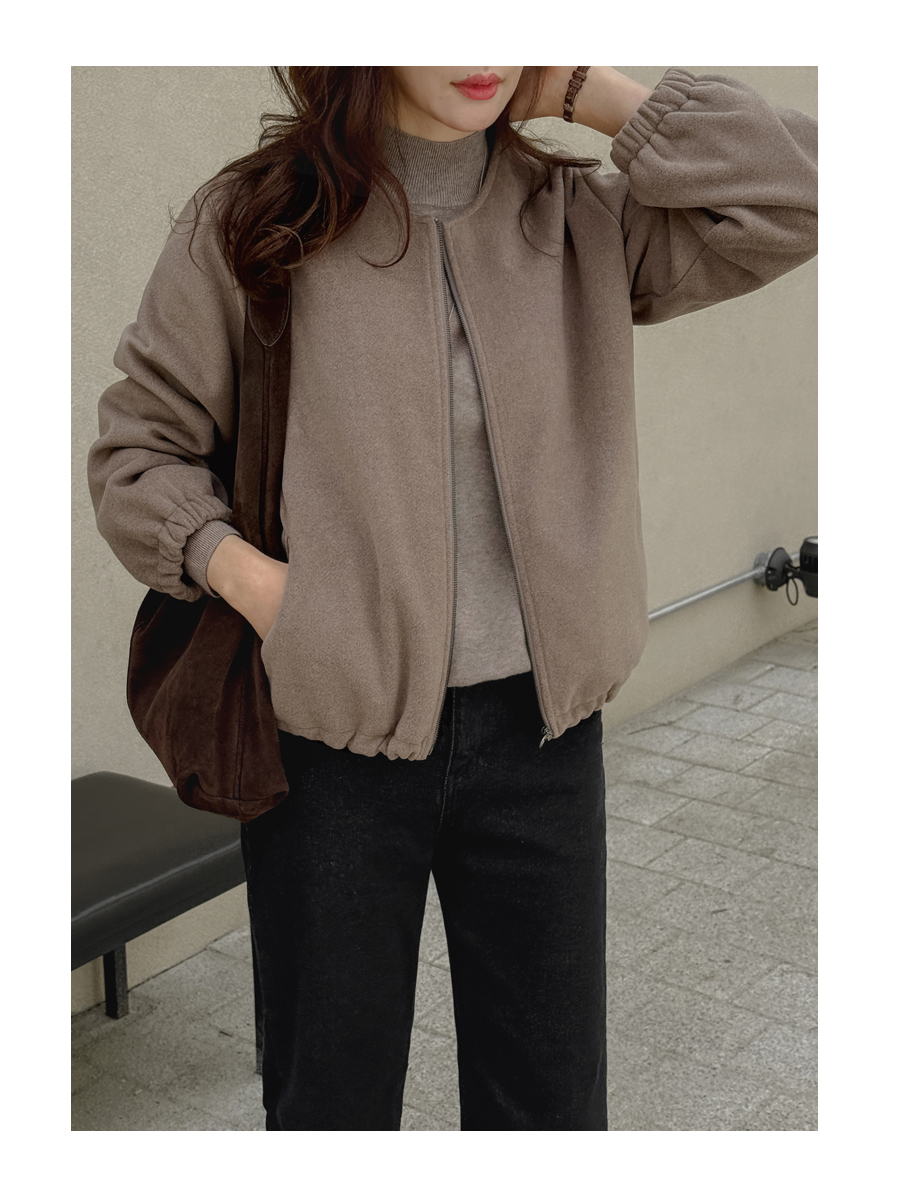 노카라 라운드넥에 지퍼로 열고 닫으며