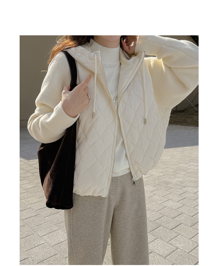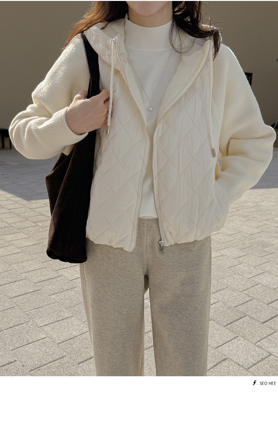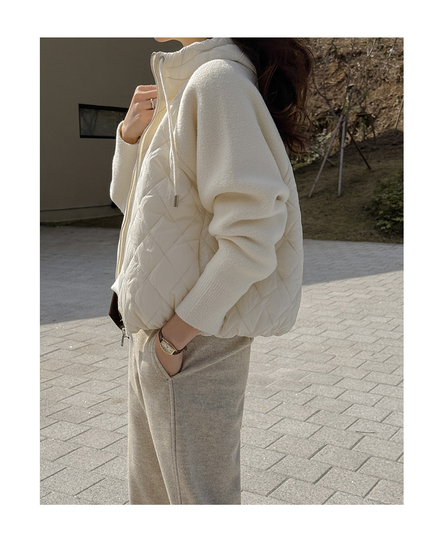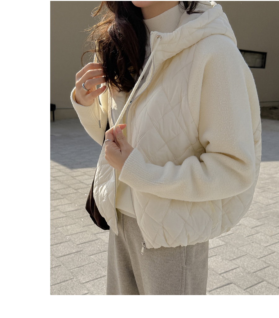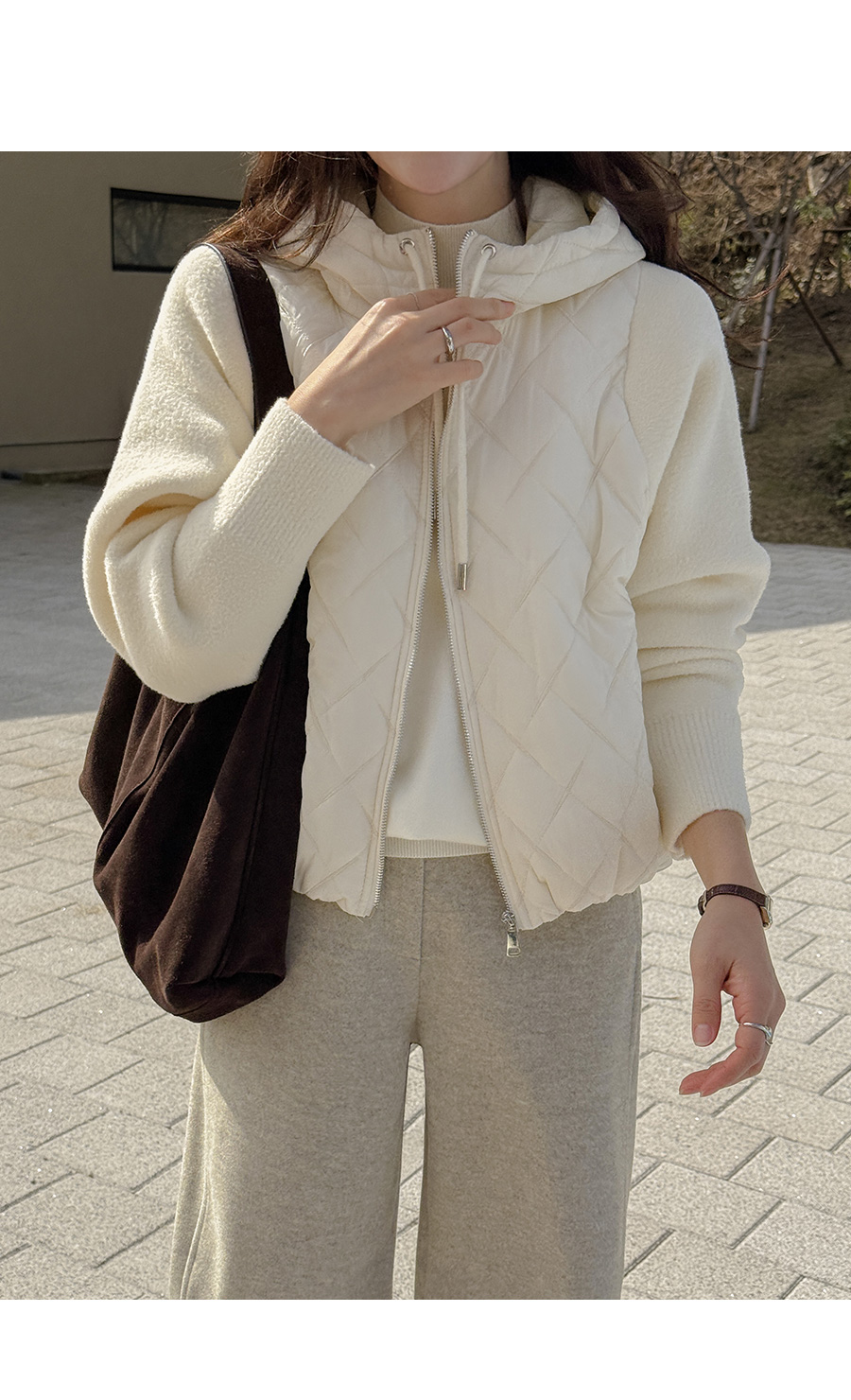 立体感のあるダイヤ刺繍キルティングパターンにしっかりしたニット袖着心地本当に楽です(2color)
