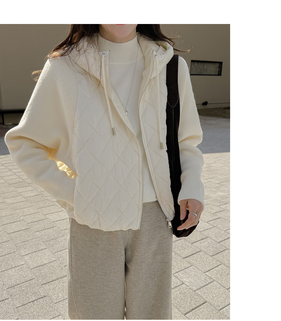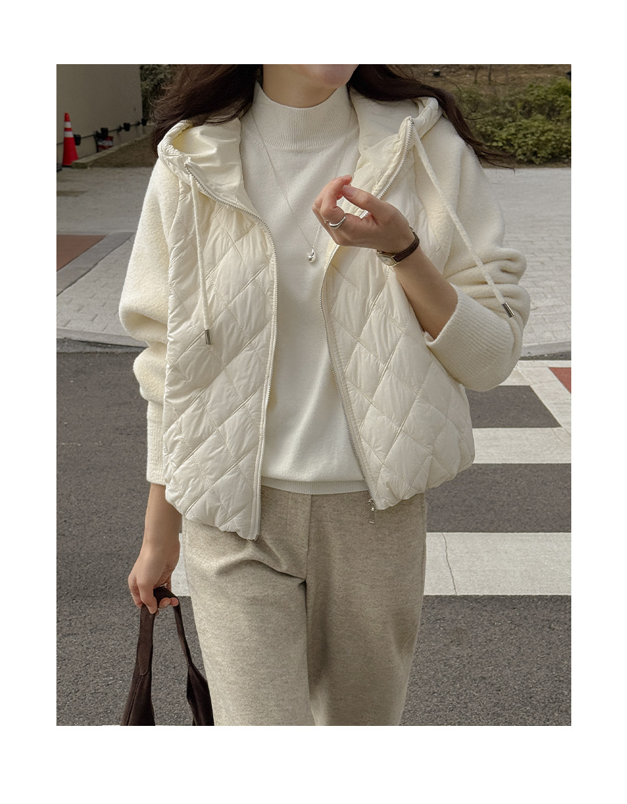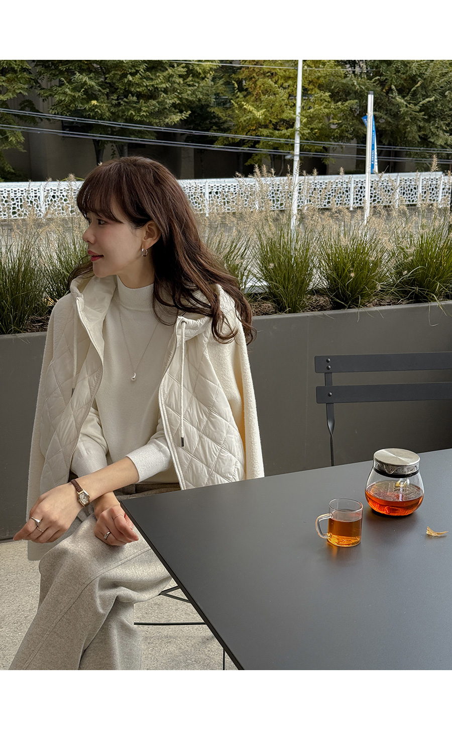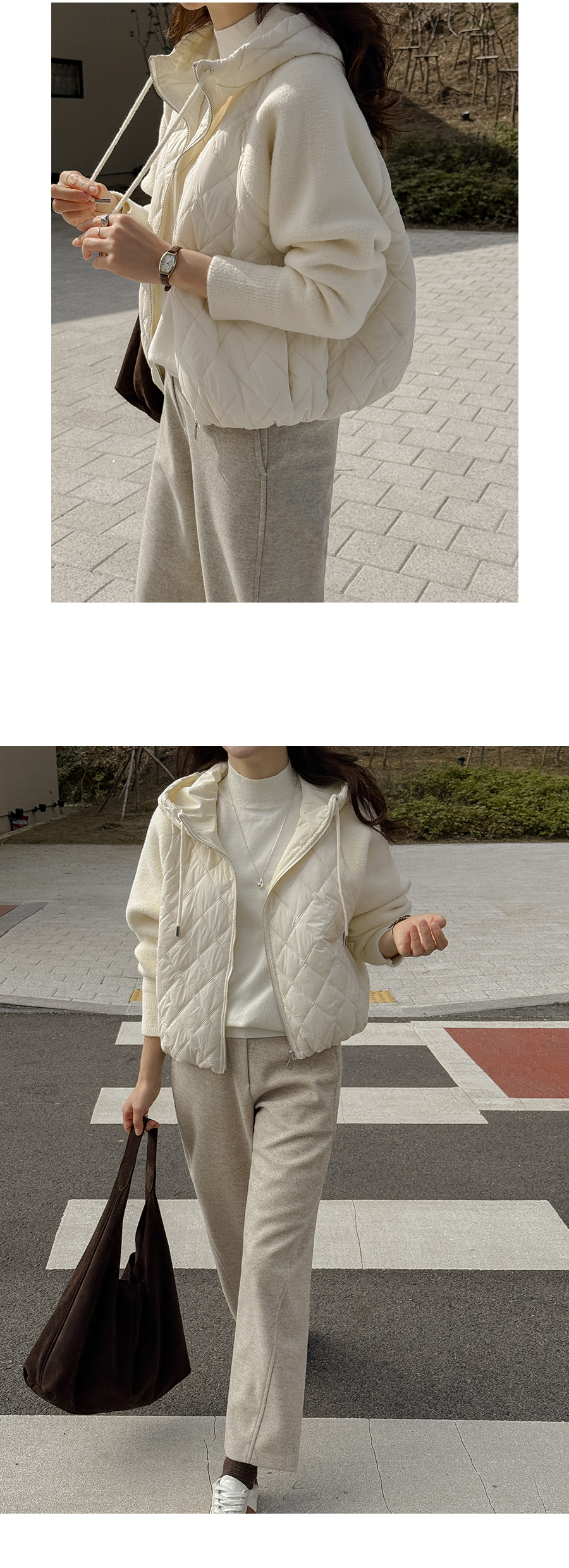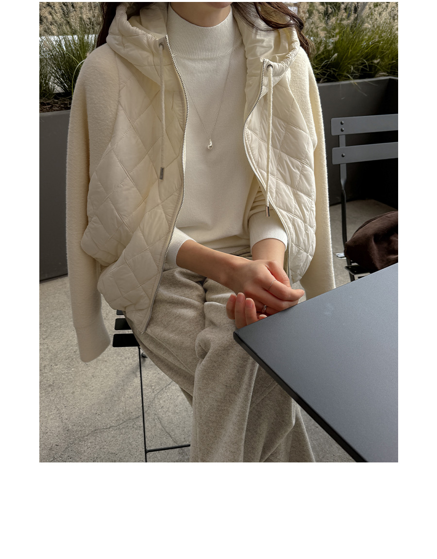 立体感のあるダイヤ刺繍キルティングパターンにしっかりしたニット袖着心地本当に楽です(2color)