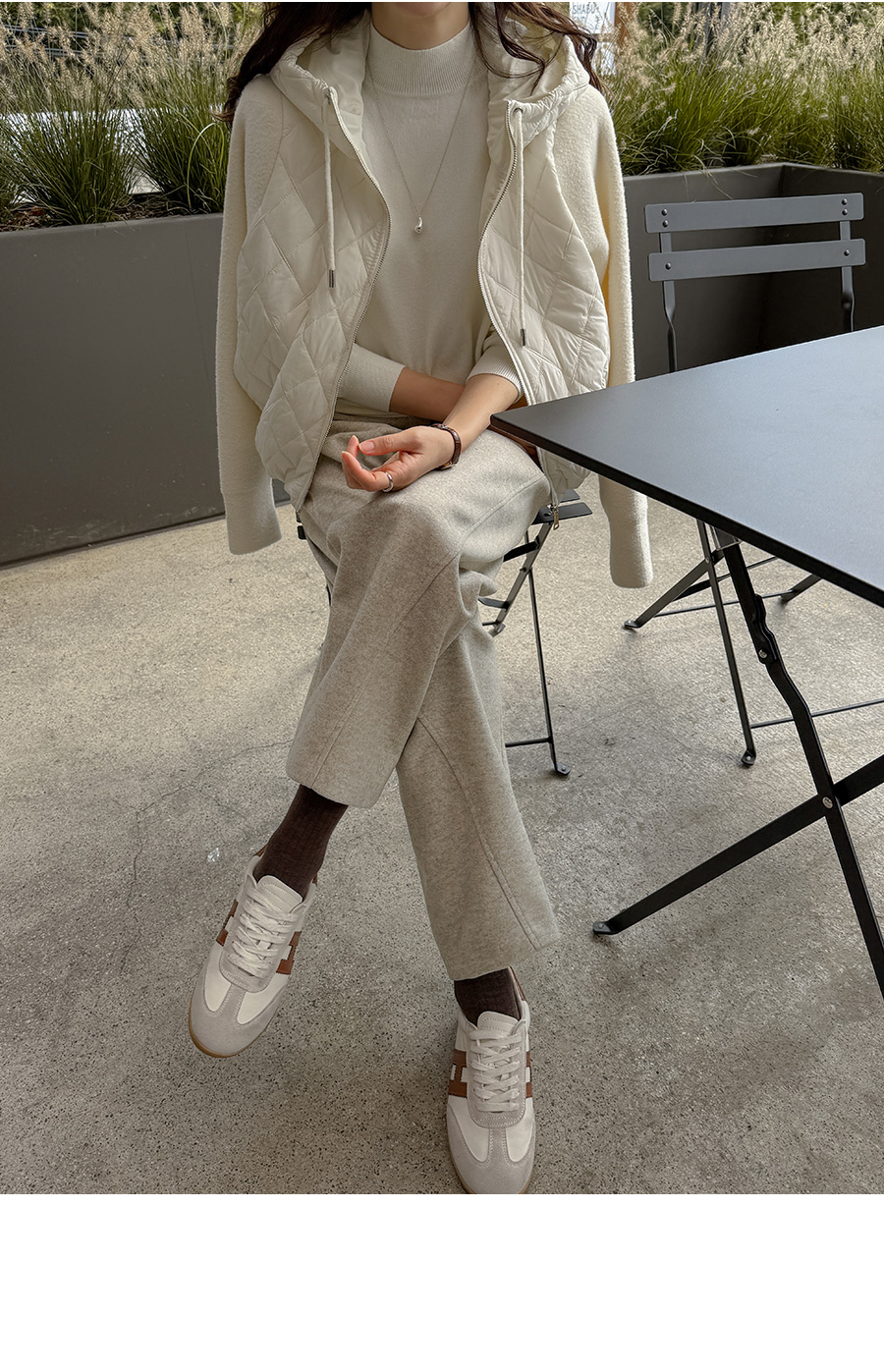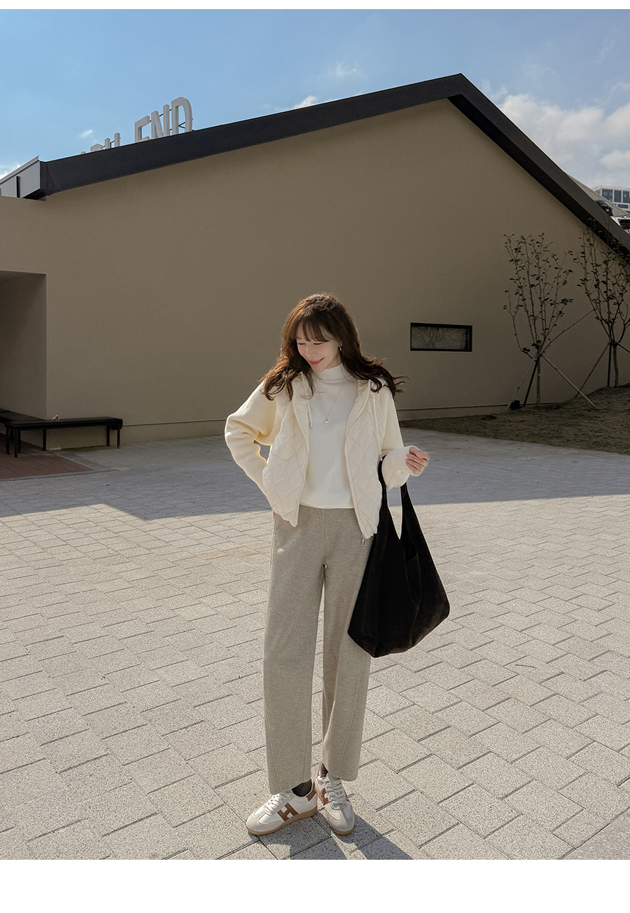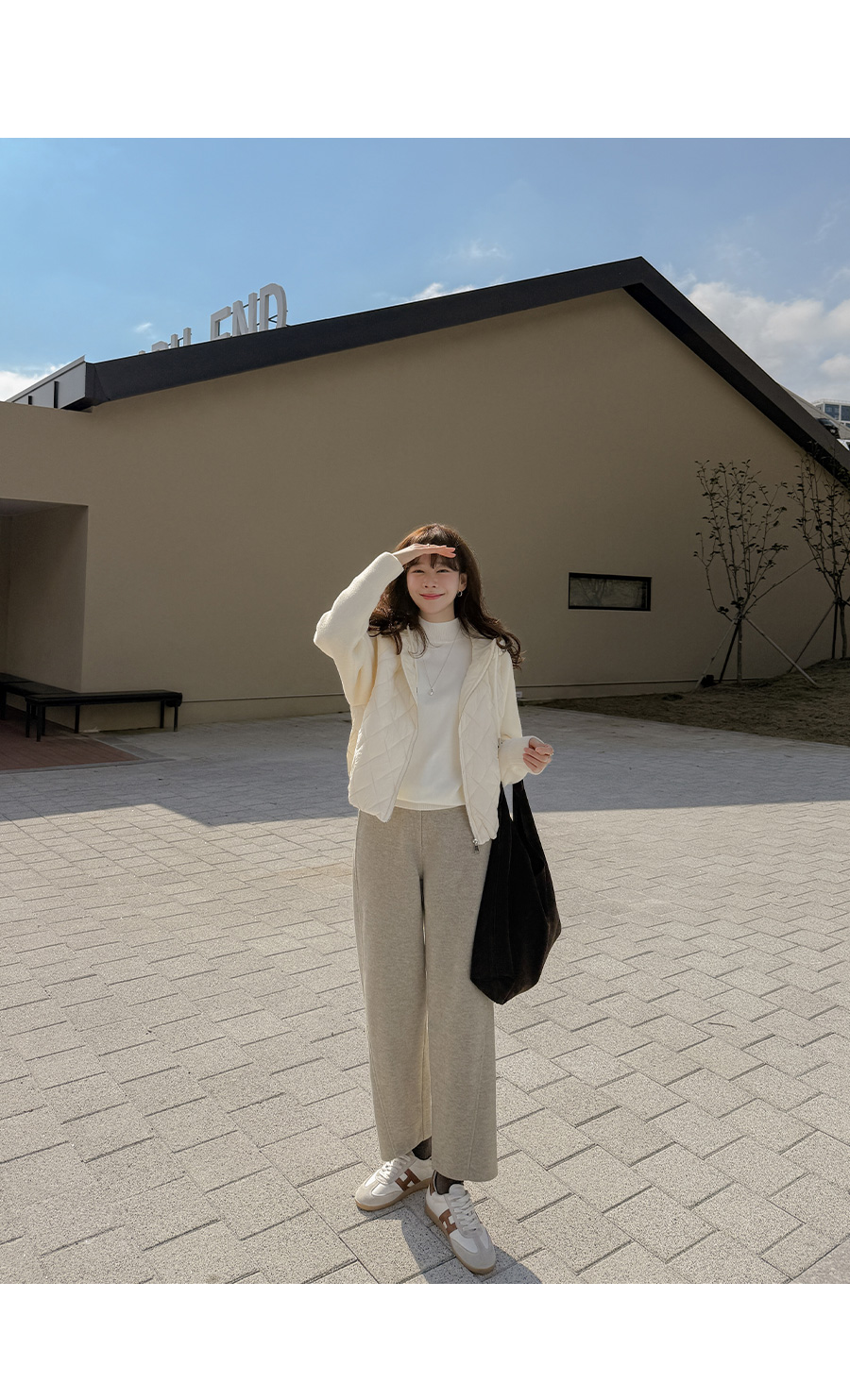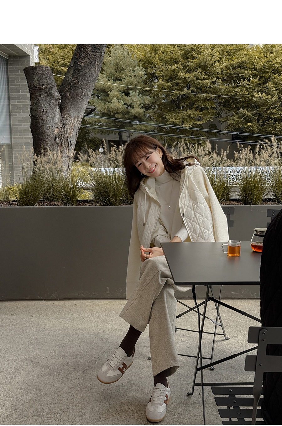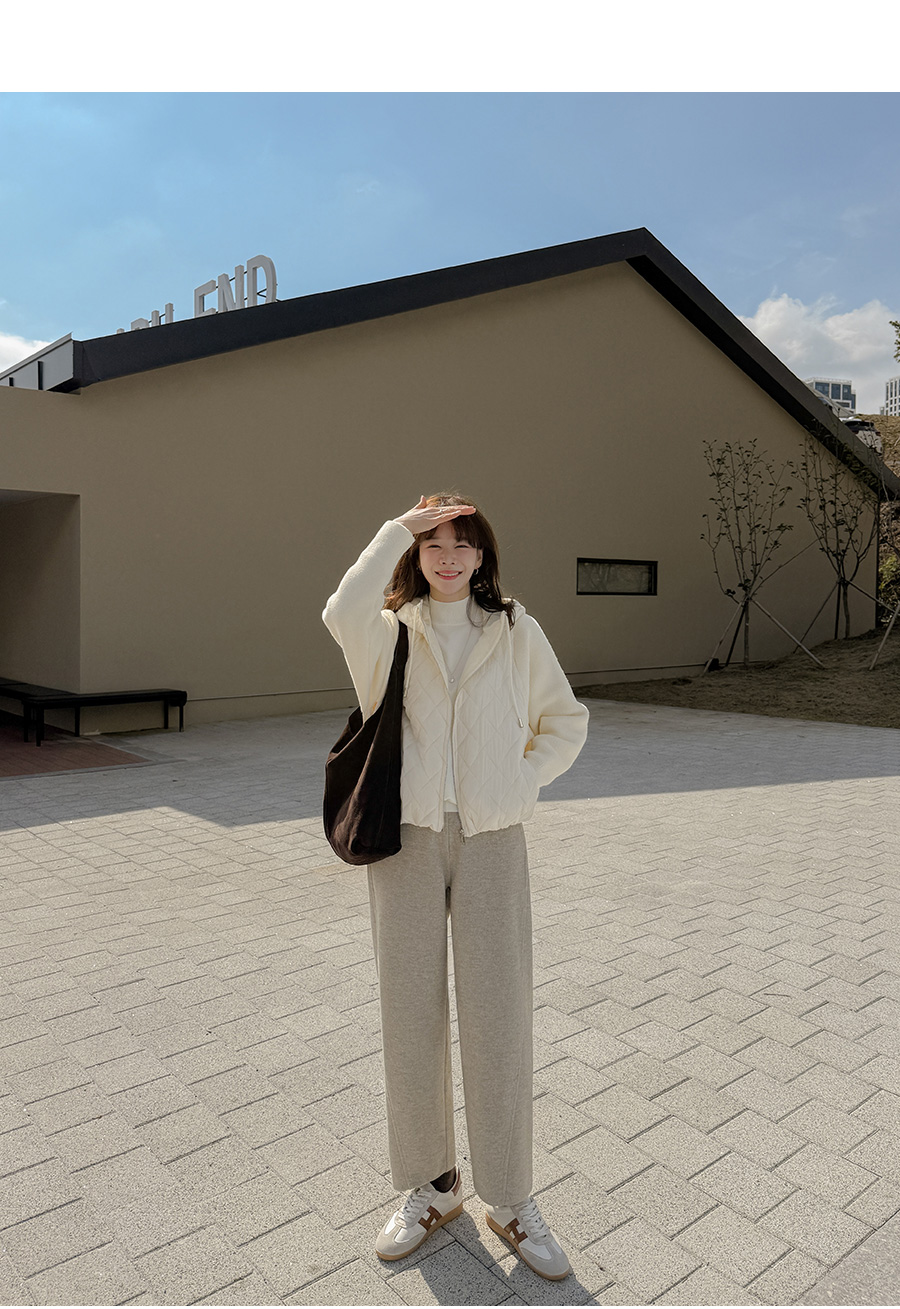 立体感のあるダイヤ刺繍キルティングパターンにしっかりしたニット袖着心地本当に楽です(2color)