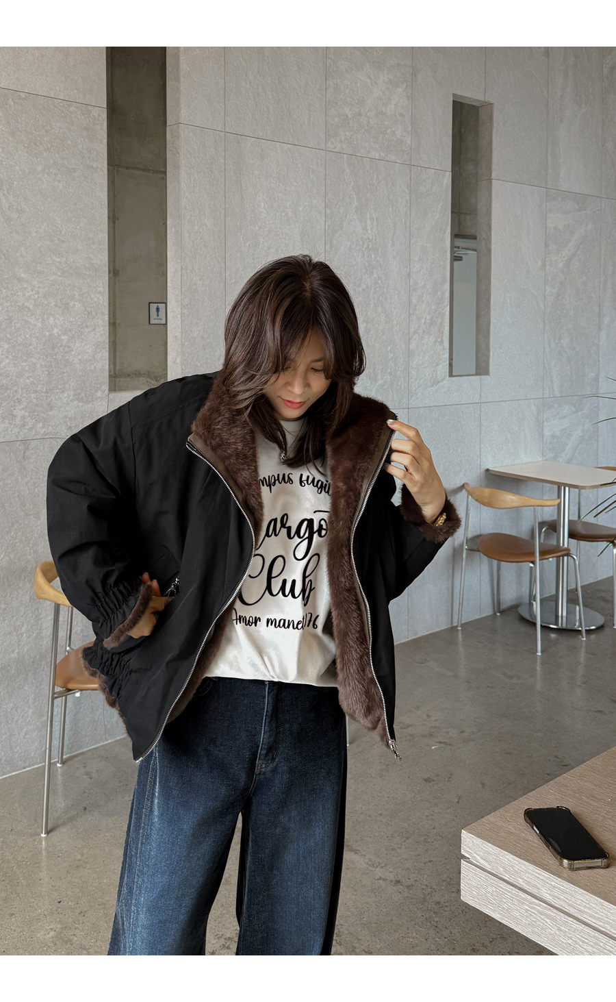 리버시블 디자인의 점퍼에요