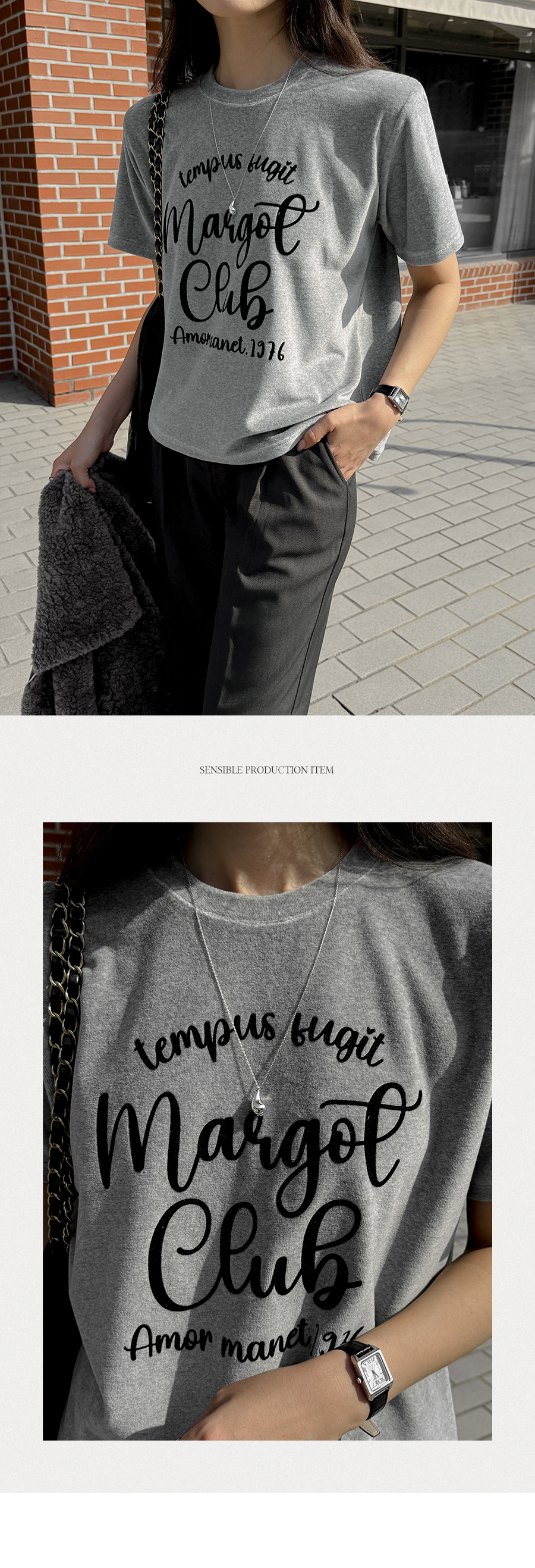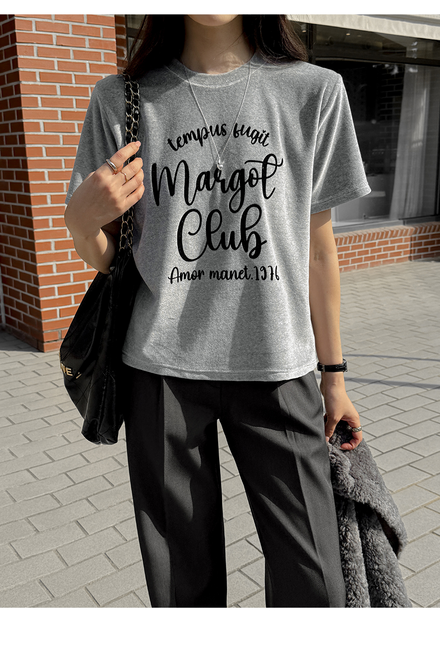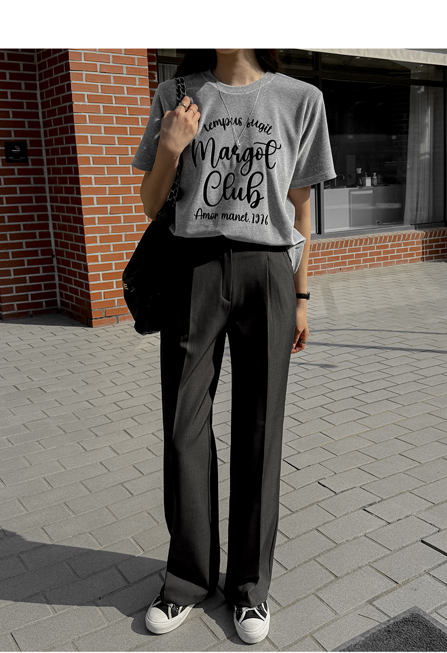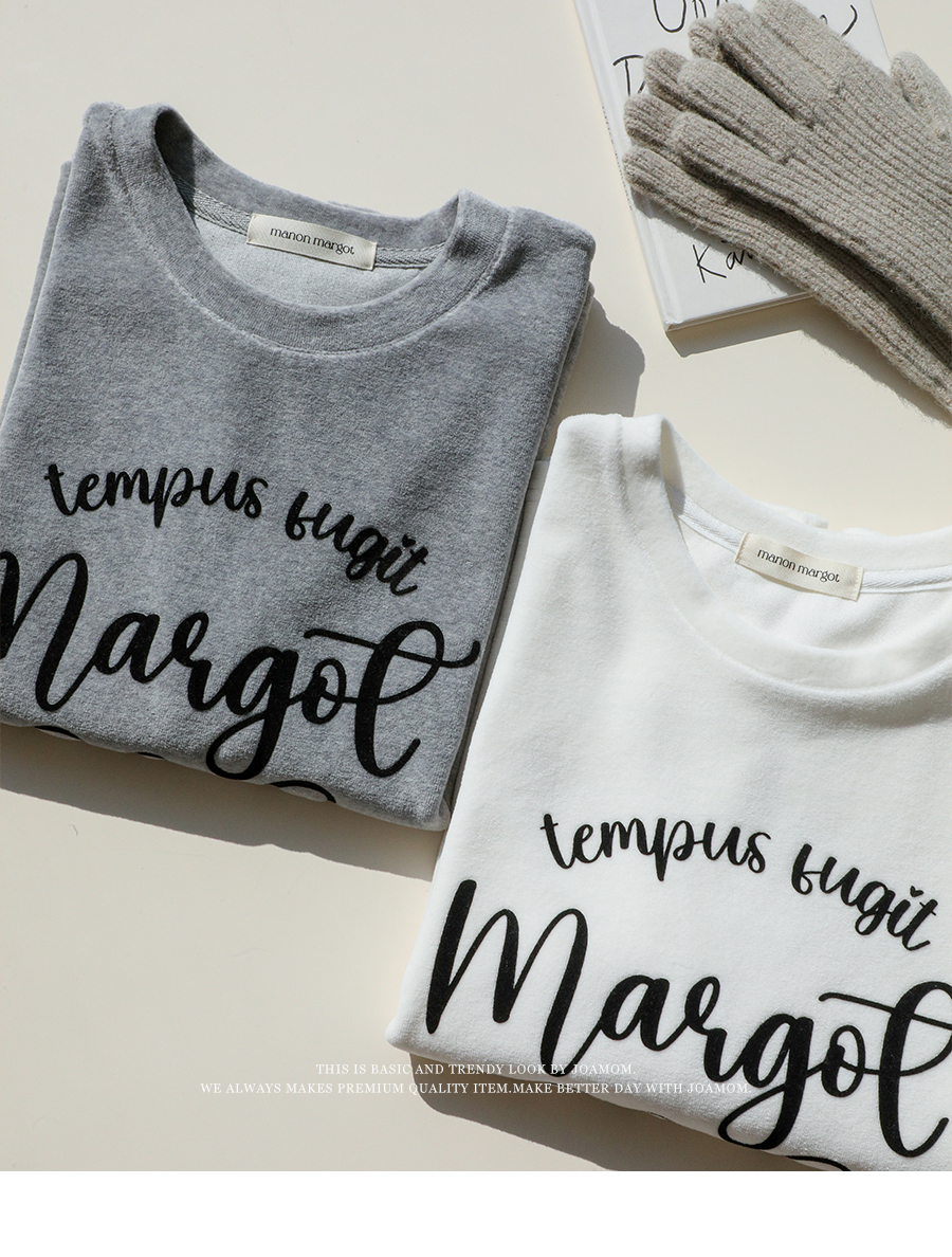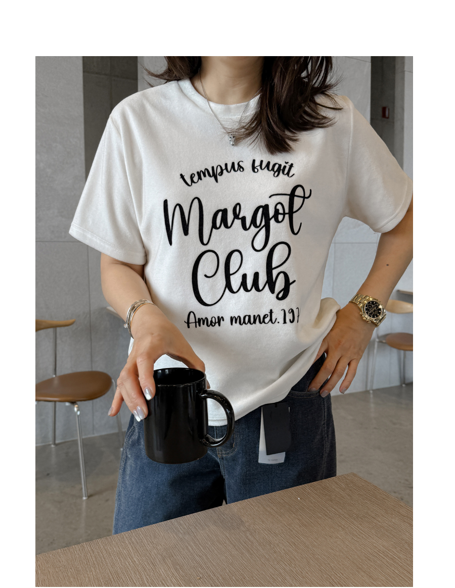 ベルベットの高級感のある素材感とタイポレタリングが出会い、楽にマッチしても雰囲気終わりのジョアマムのティーシャツ! (2color)