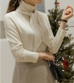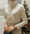 넥 앞쪽에서 가볍게 리본을 묶어주면