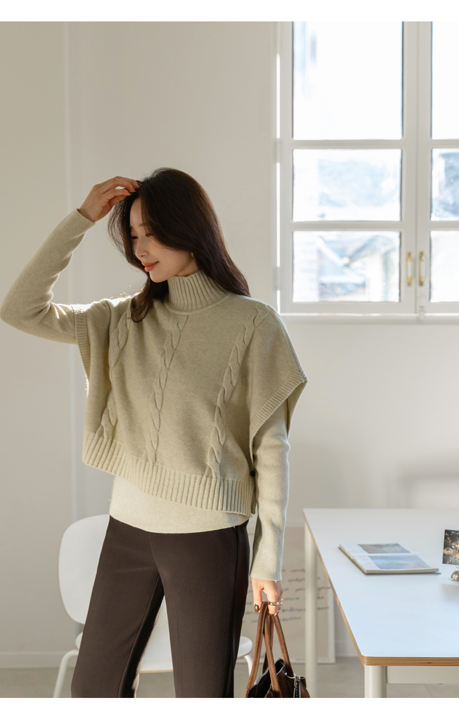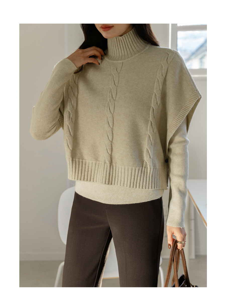 루즈한 니트 조끼가 세트 구성인 디자인으로