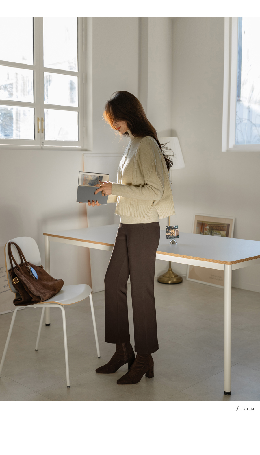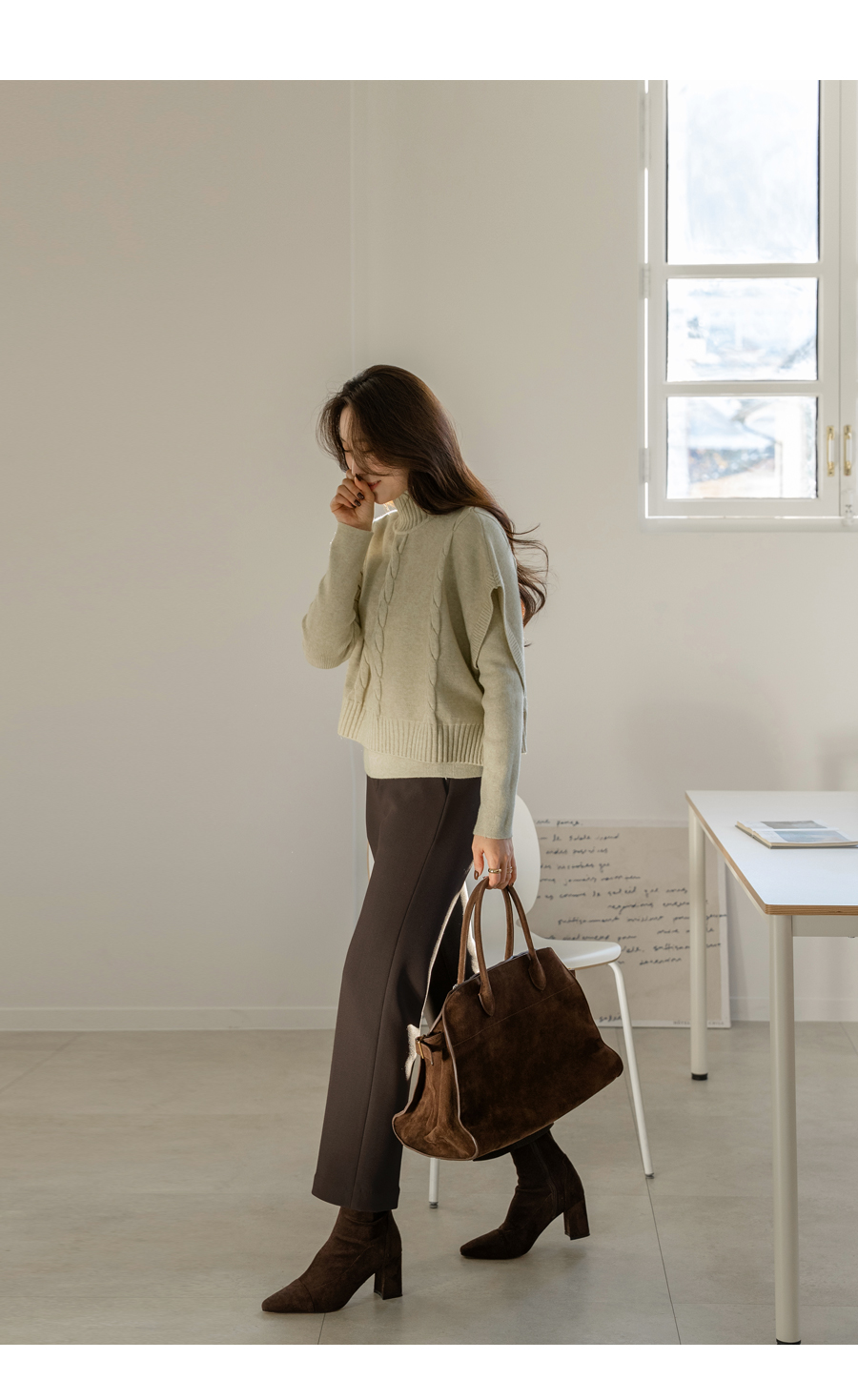 차분하면서 고급스러운 무드의 니트 세트에요