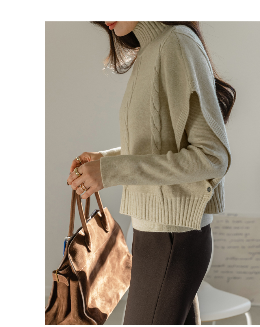 골지 반폴라 니트와 케이블 짜임의