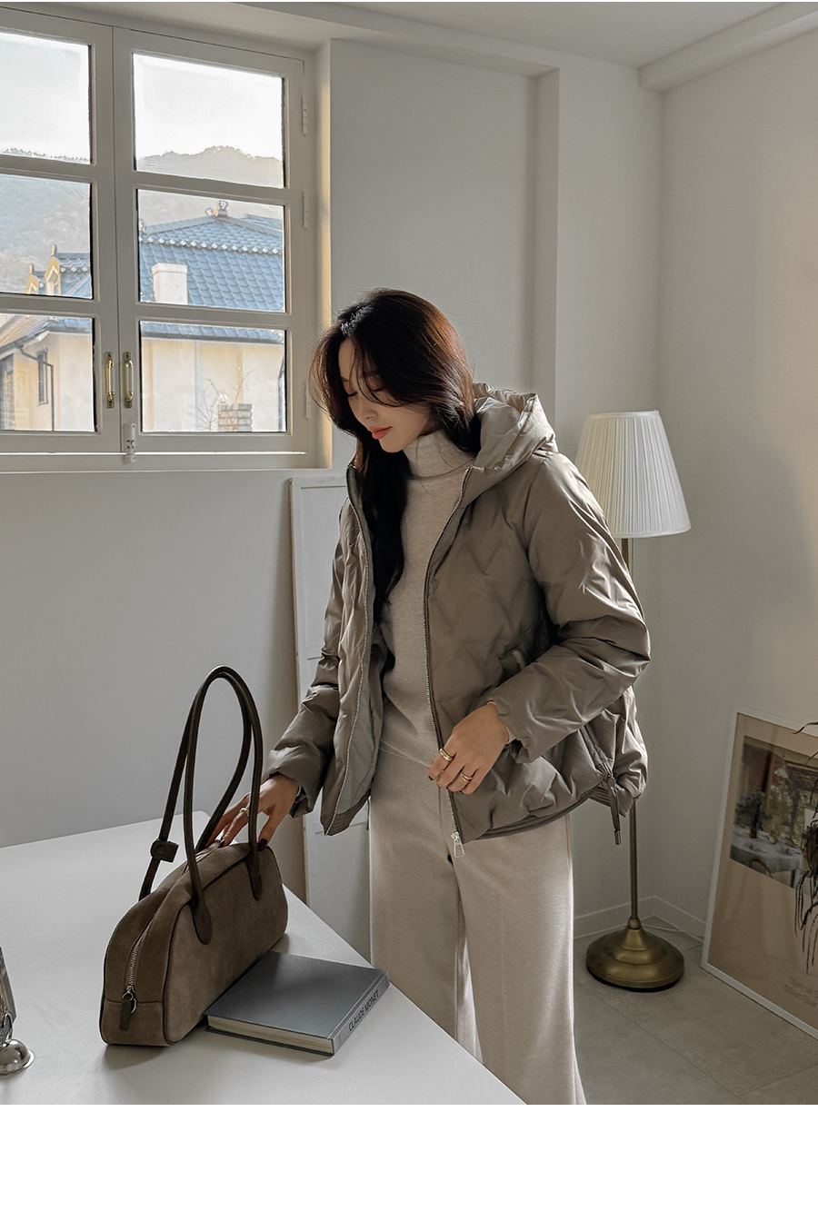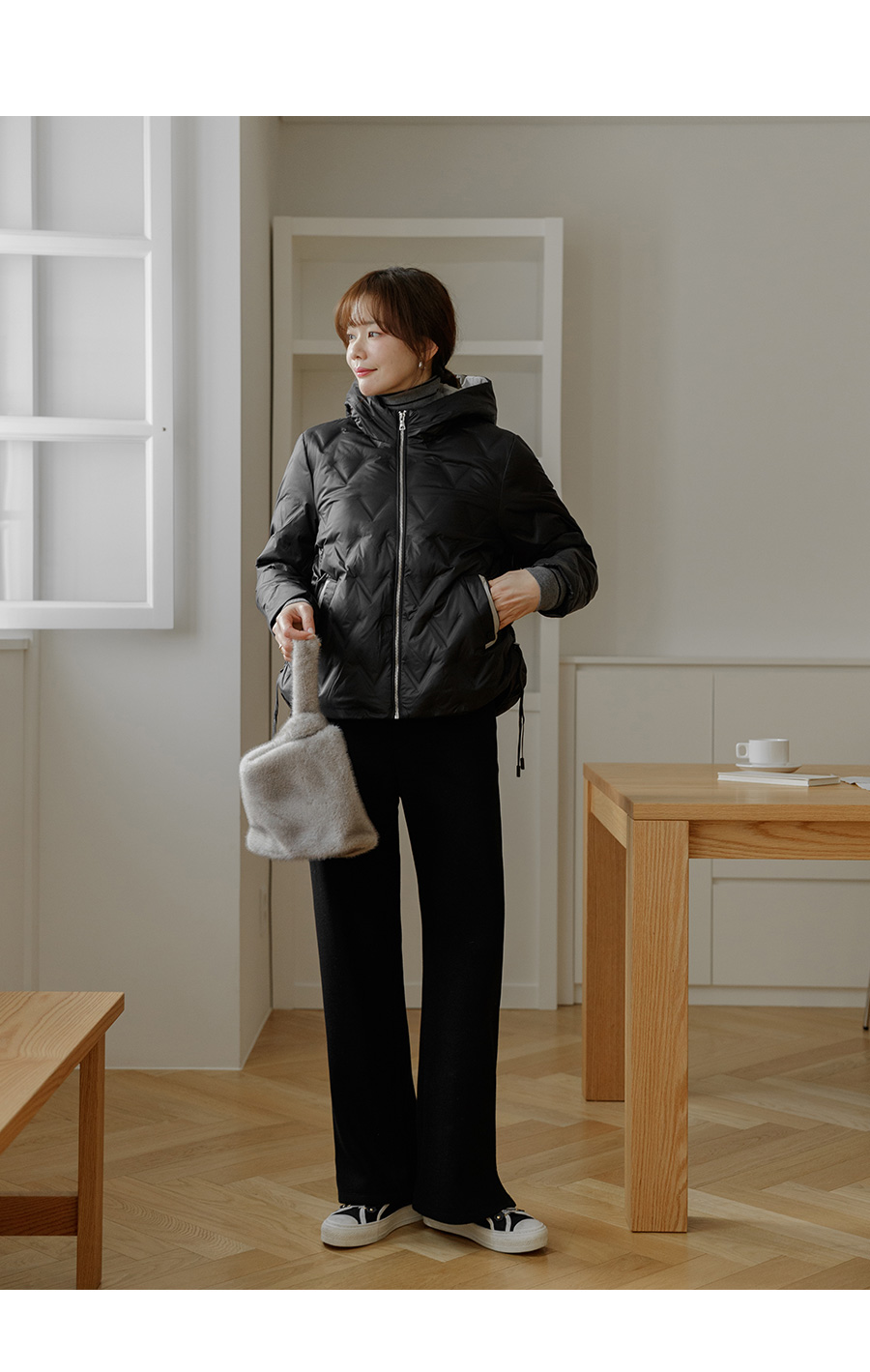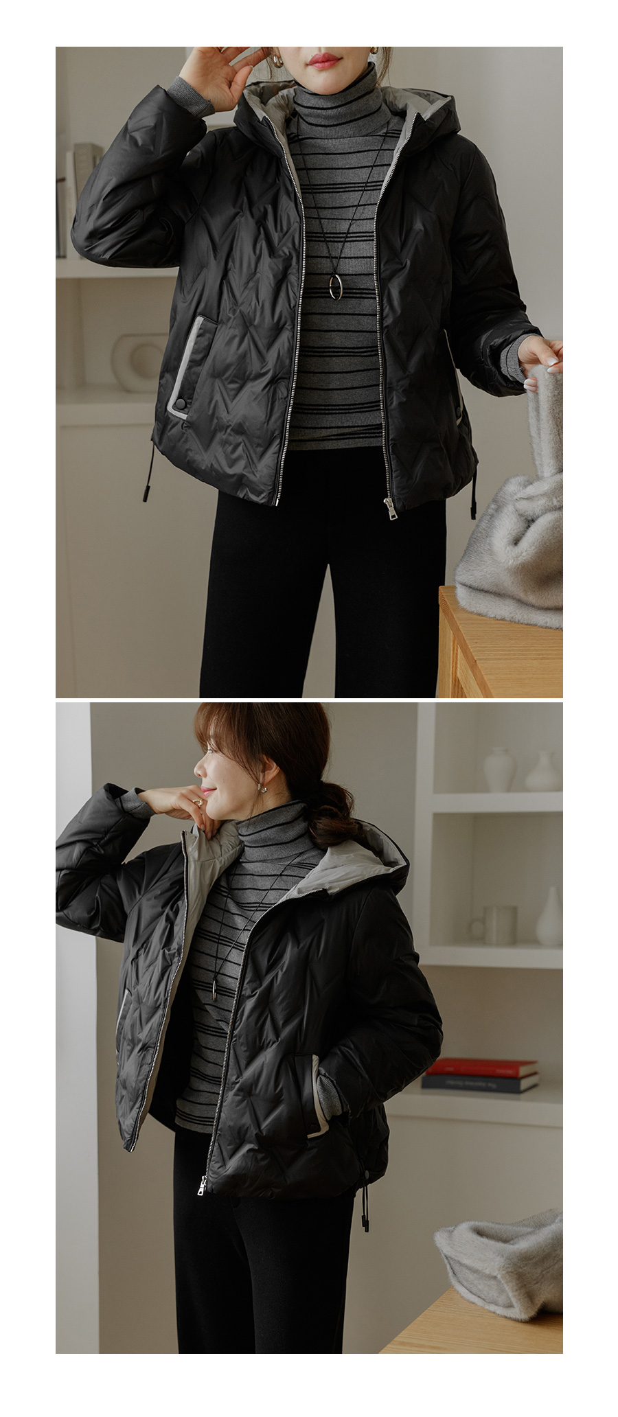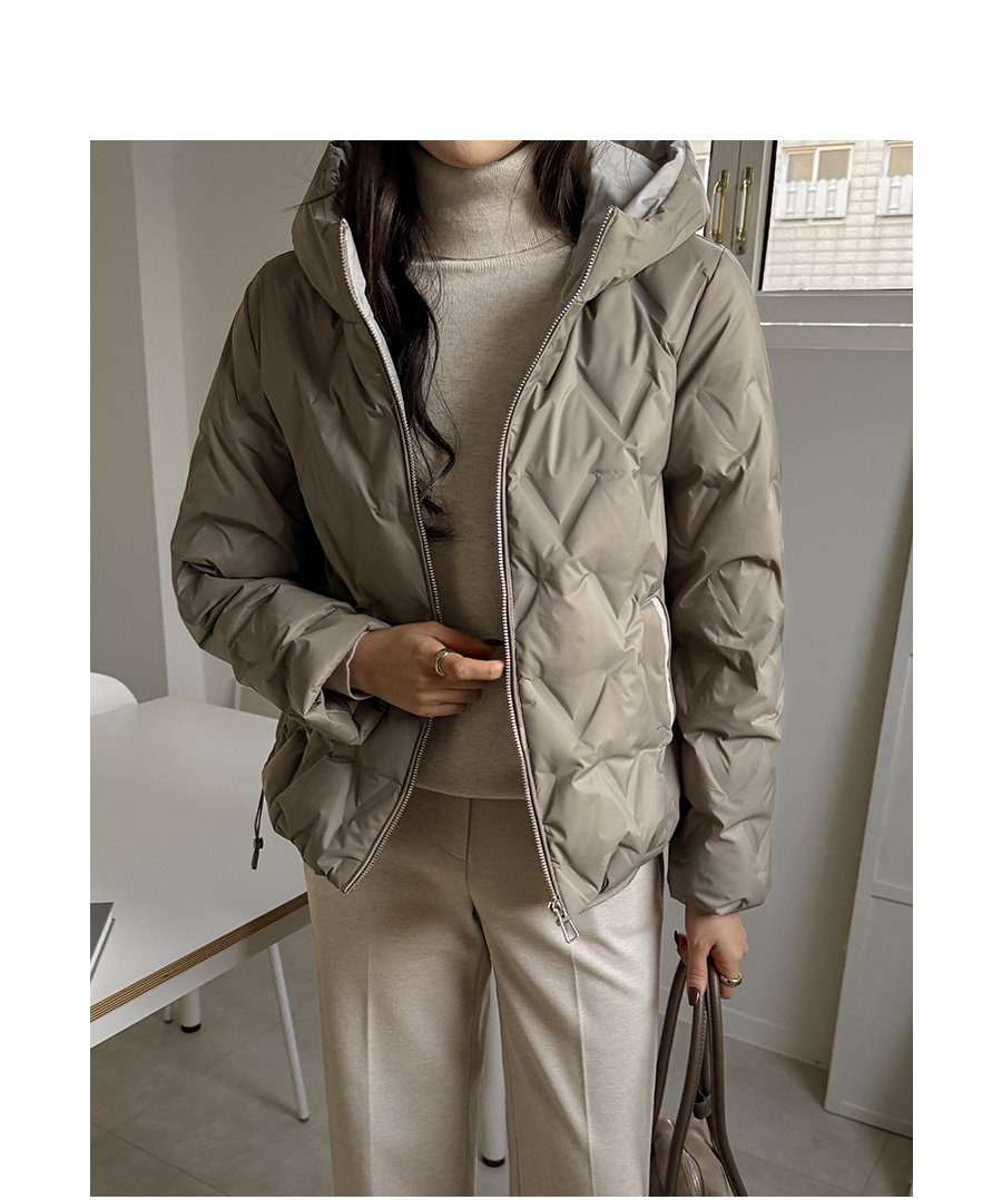 세련된 실루엣이 돋보이는 덕다운 패딩이에요