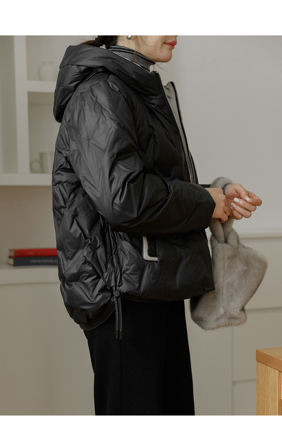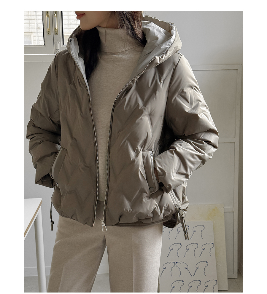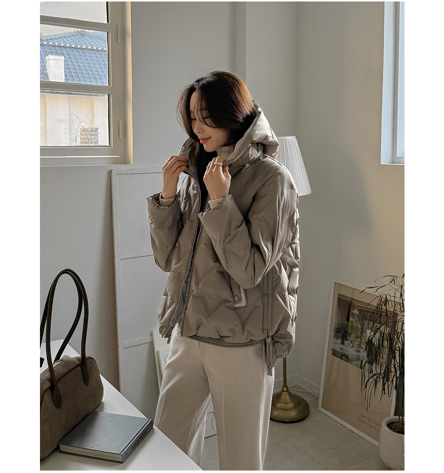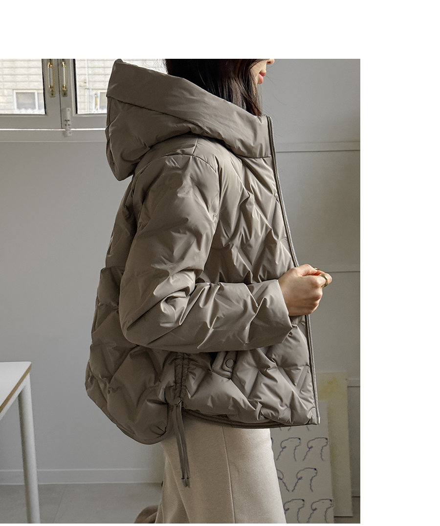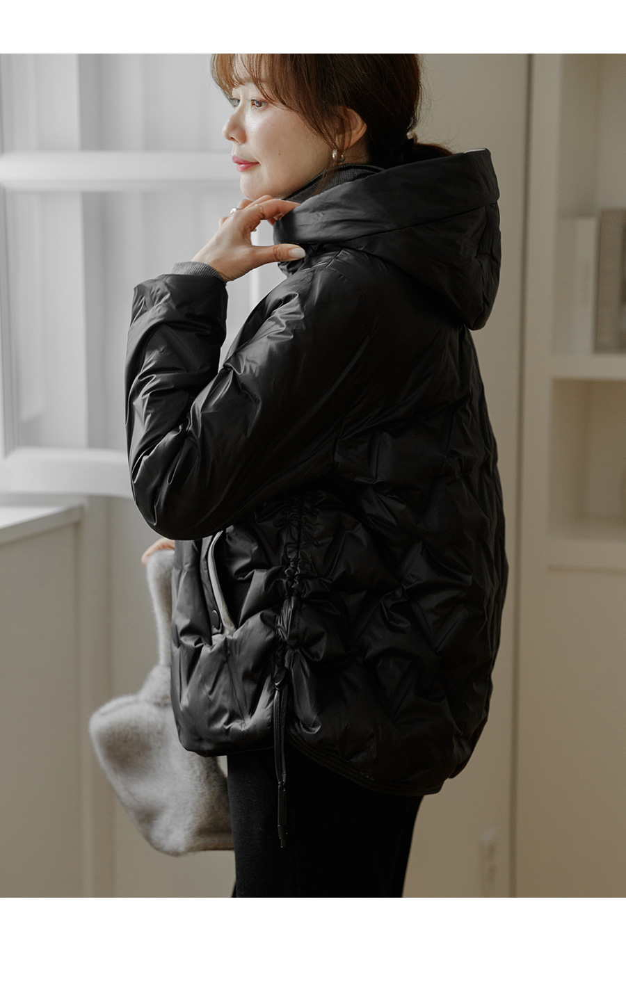 サイドストリングでシャーリングをつかみ、トレンディなスタイリング!落ち着いたように軽くて暖かいダックダウン 100% (2color)