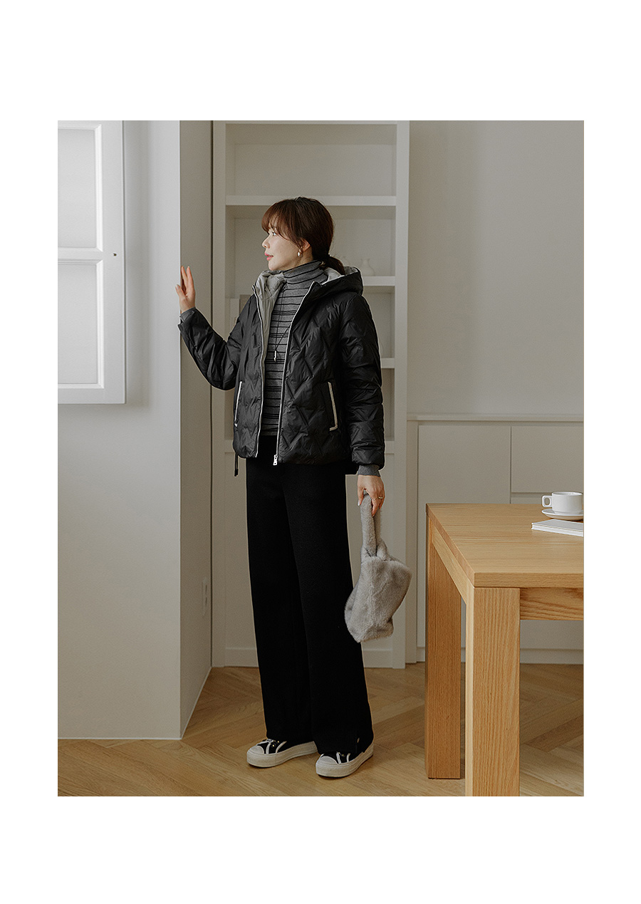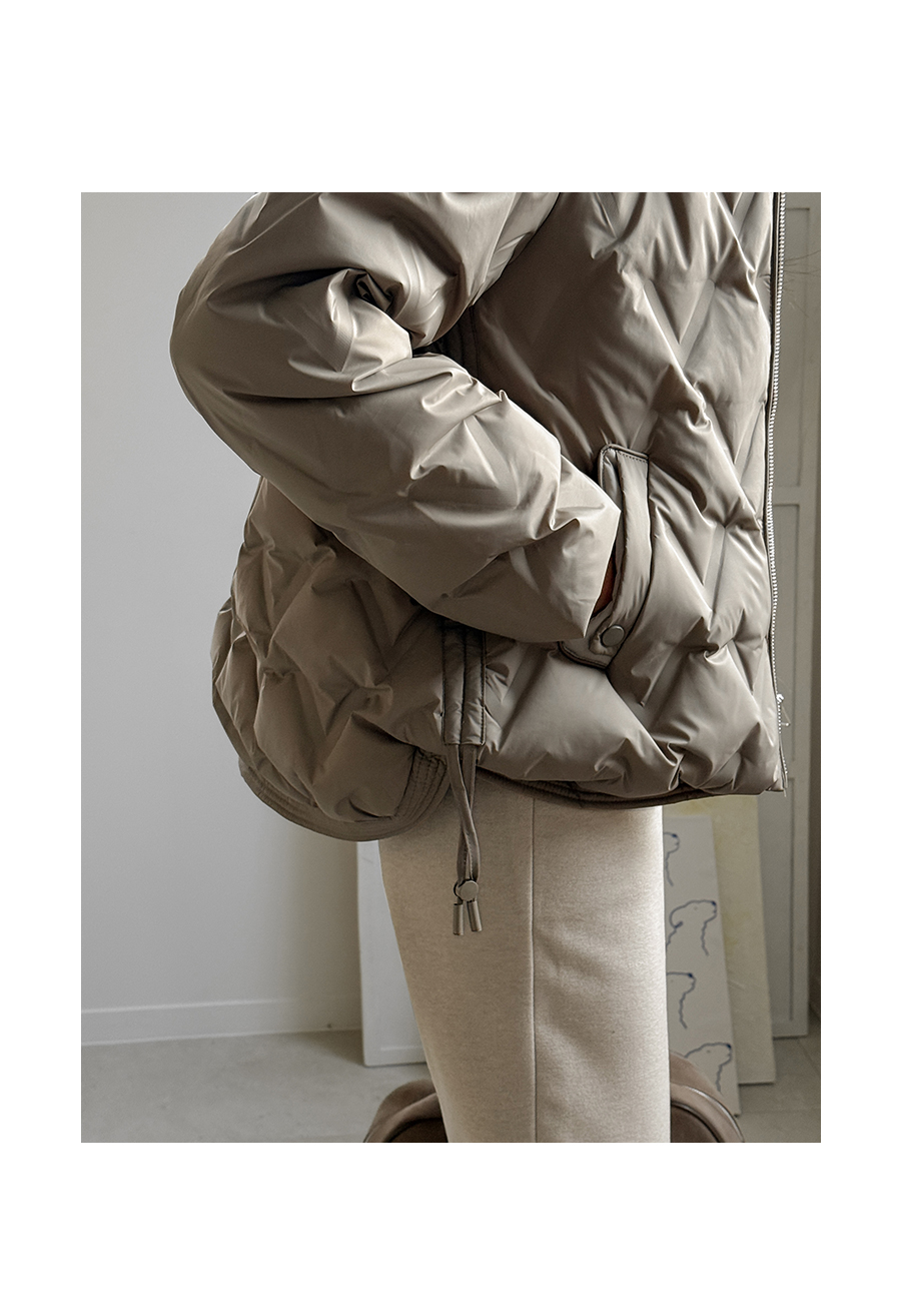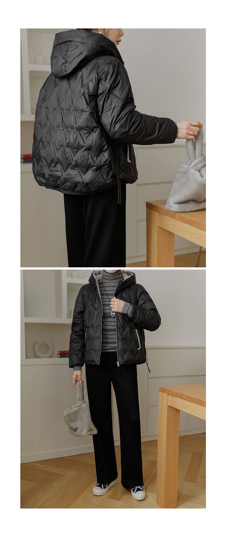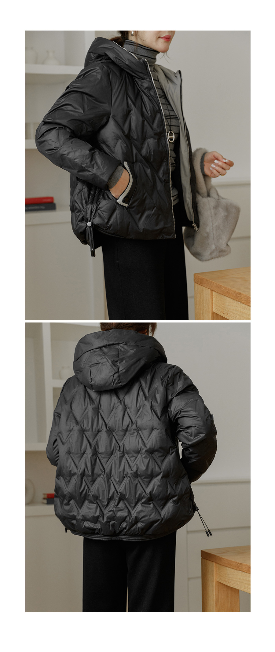 サイドストリングでシャーリングをつかみ、トレンディなスタイリング!落ち着いたように軽くて暖かいダックダウン 100% (2color)