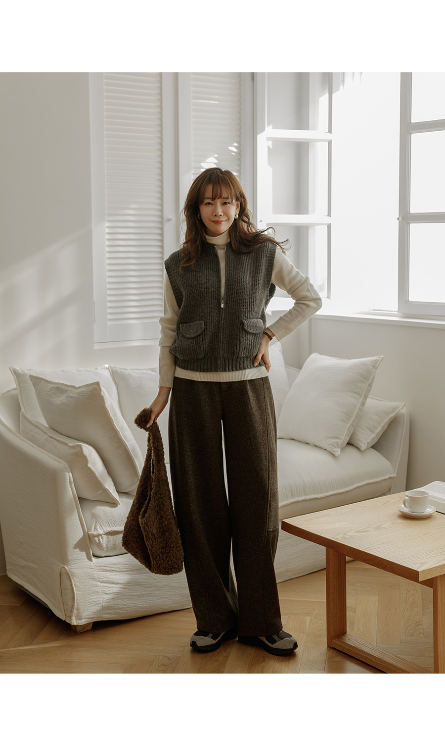 입체적인 커브핏의 플리스 기모 팬츠에요