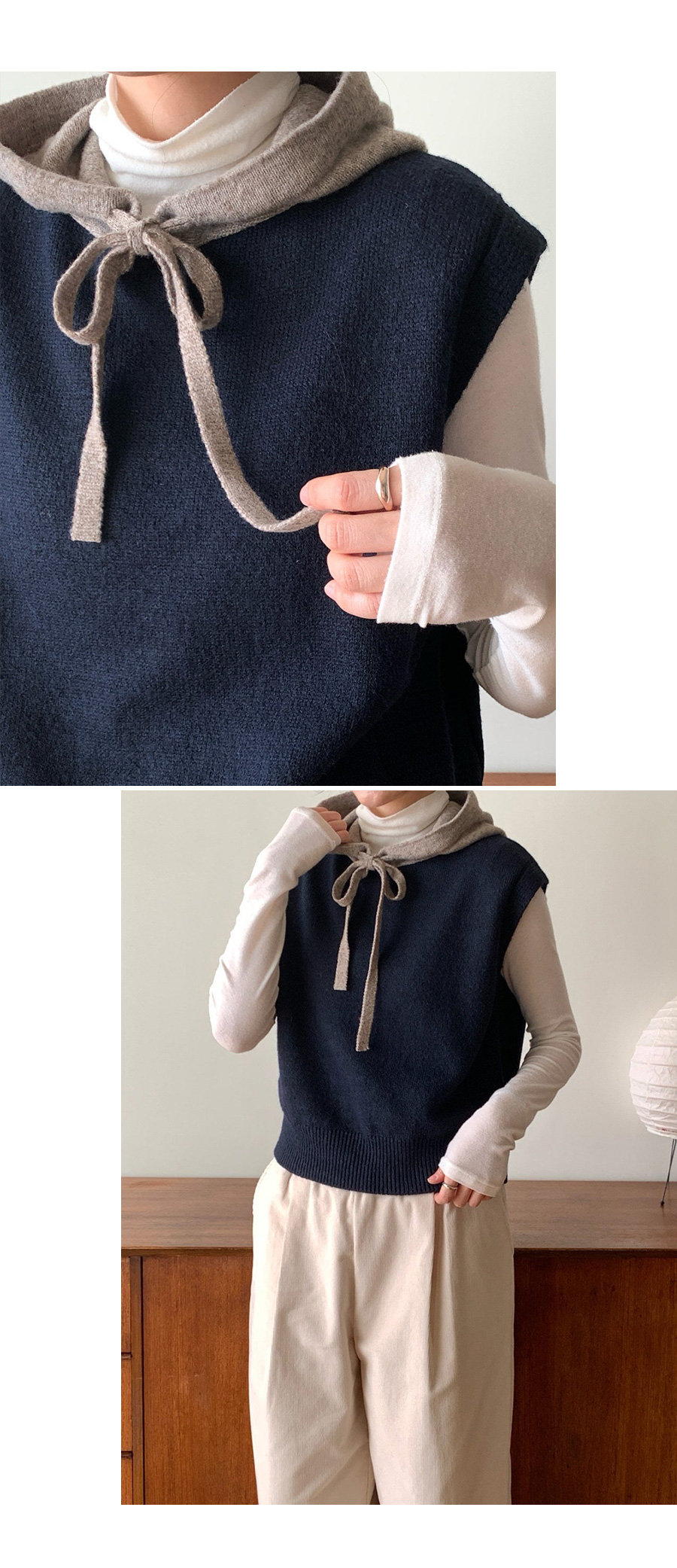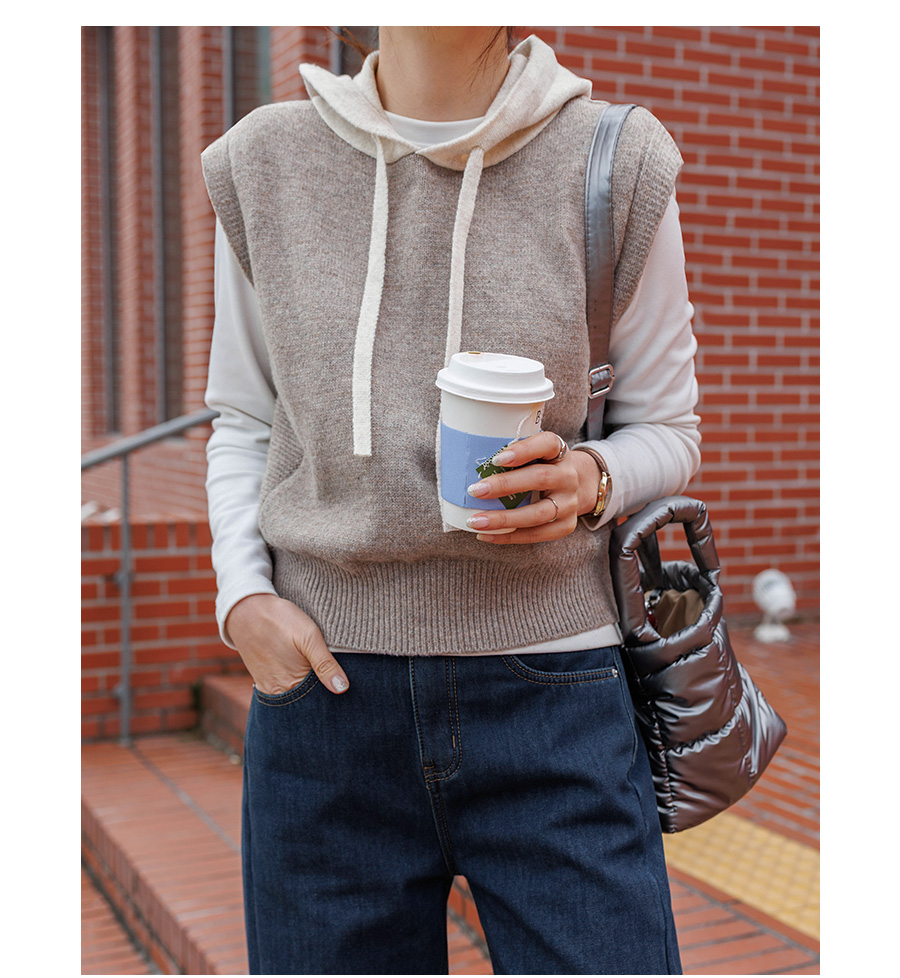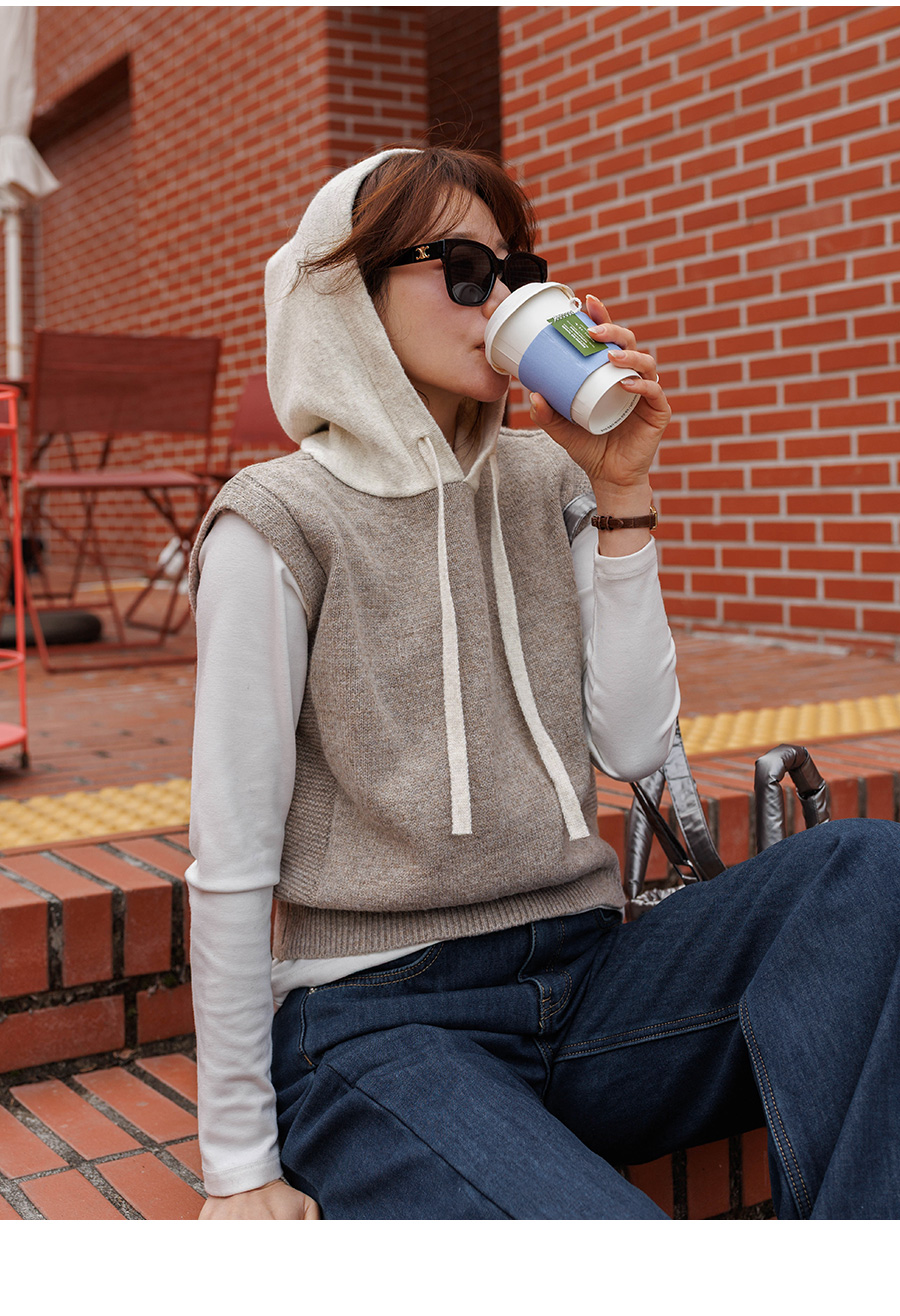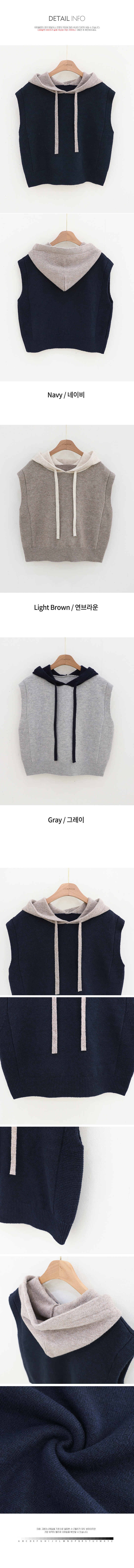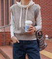 컬러 배색이 있는 후드 니트 조끼에요