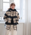 컬러 조합이 세련된 부클 후드 점퍼에요