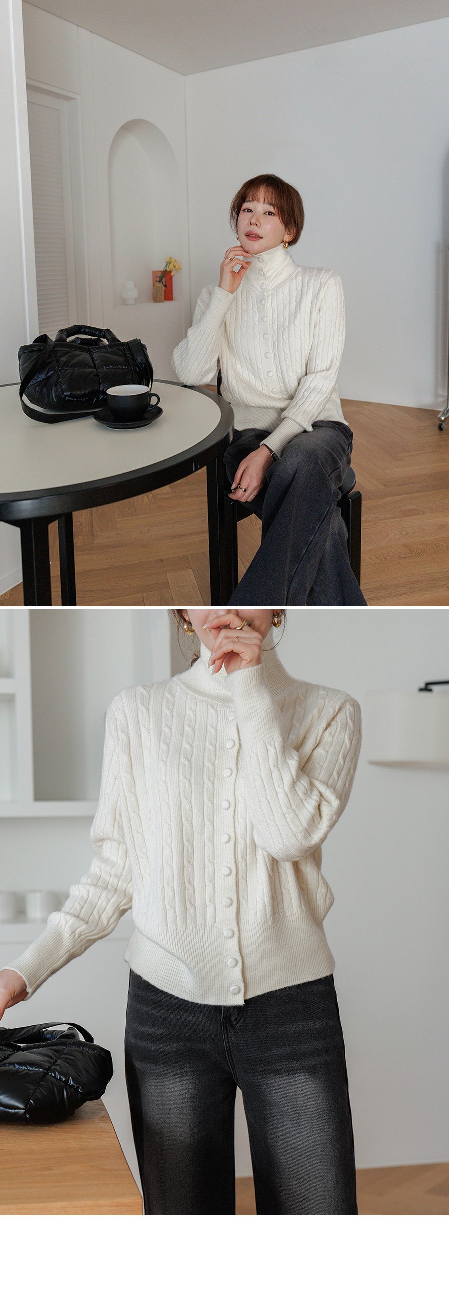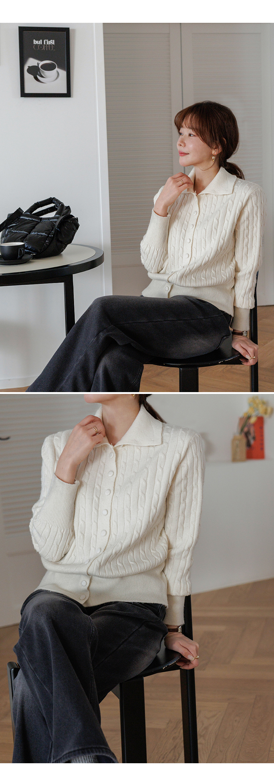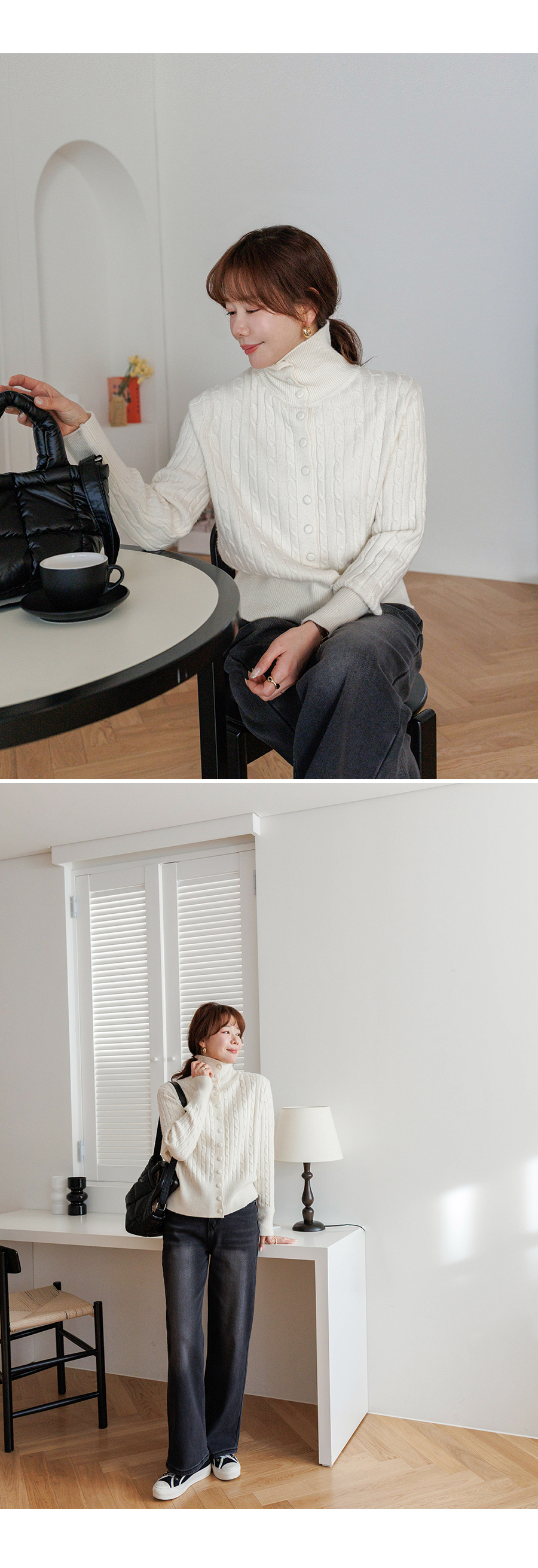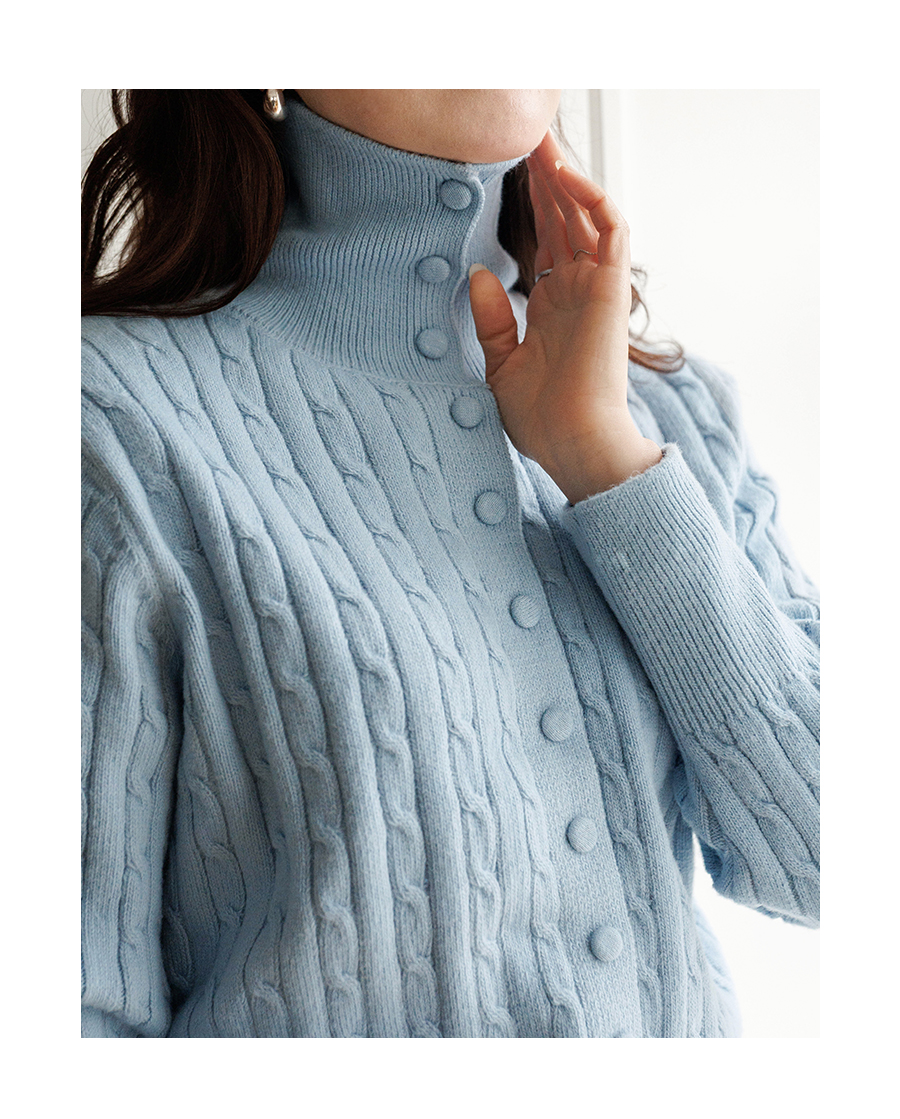 케이블 짜임으로 클래식한 무드의 니트에요