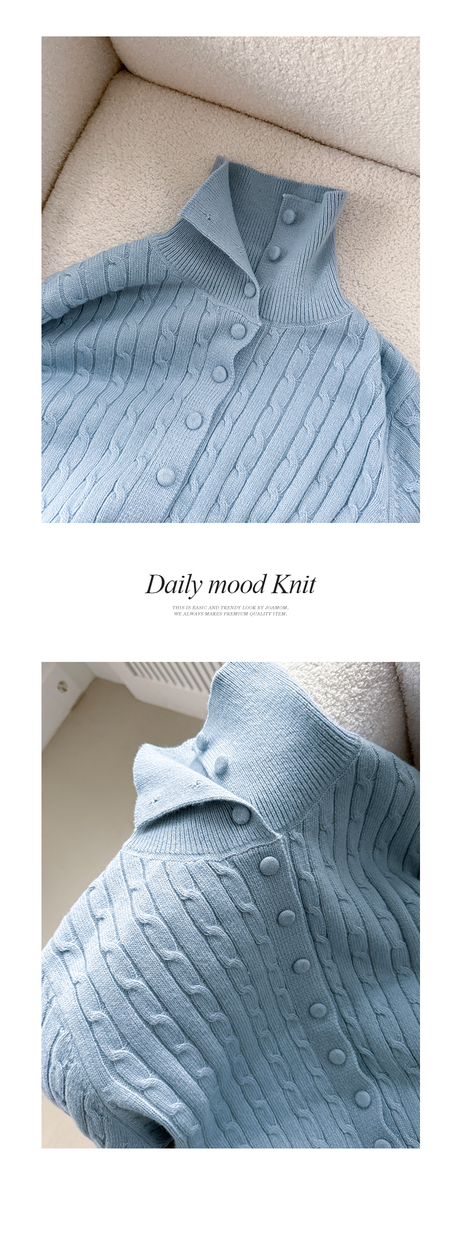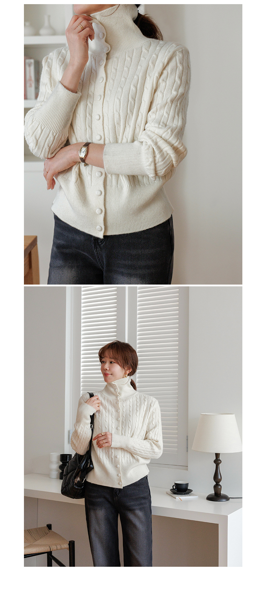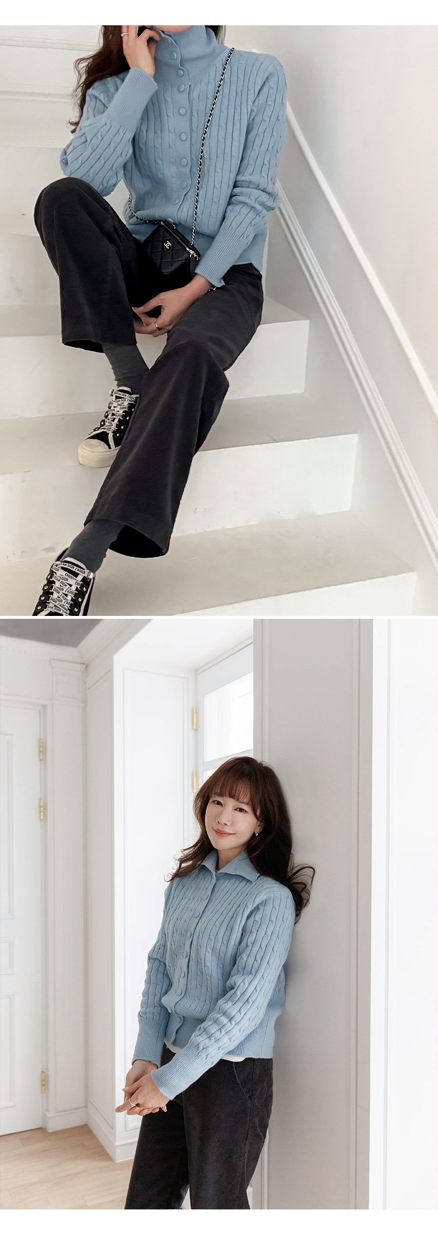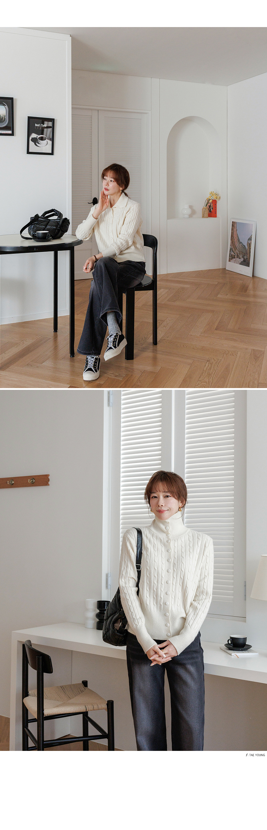 케이블 짜임으로 클래식한 무드의 니트에요