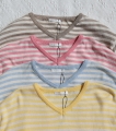ロリポップVネックコットンニット(2タイプストライプ/ソリッド)