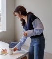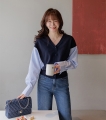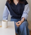 셔츠 배색 디자인으로 가디건 하나로 멋스러운 스타일링