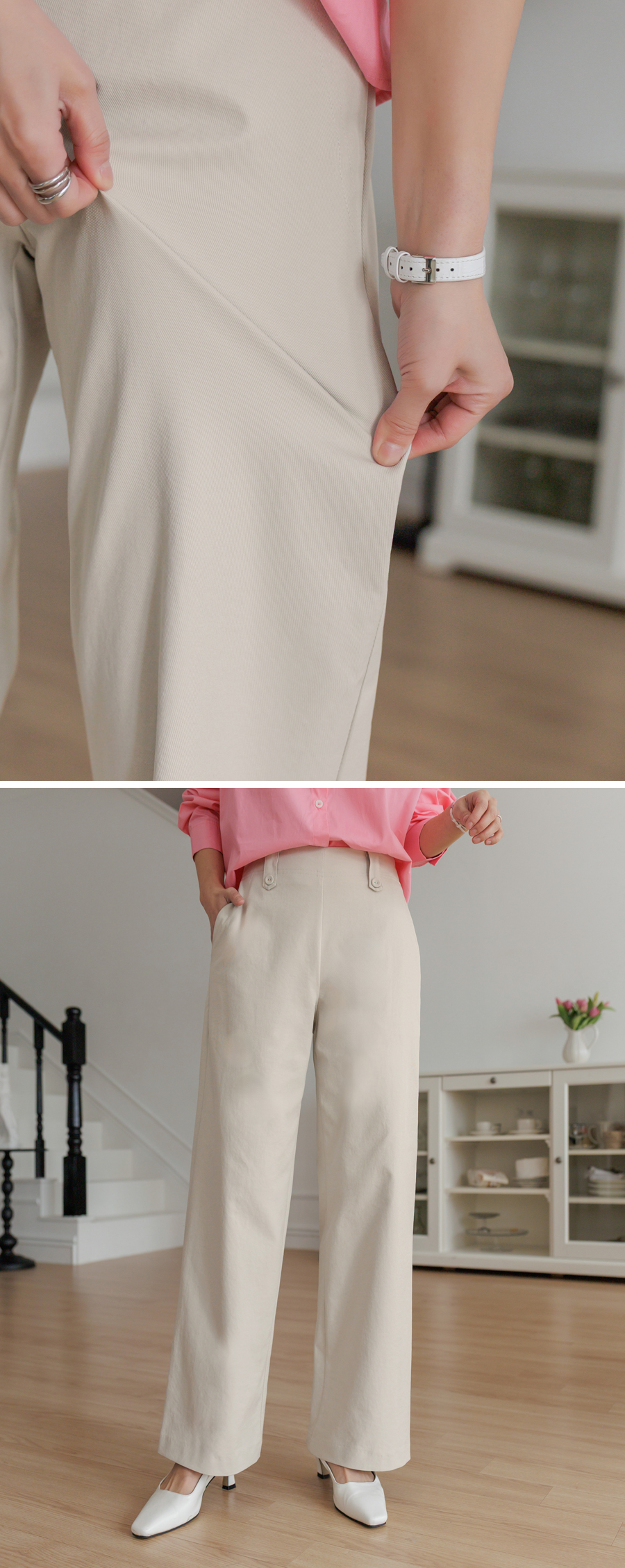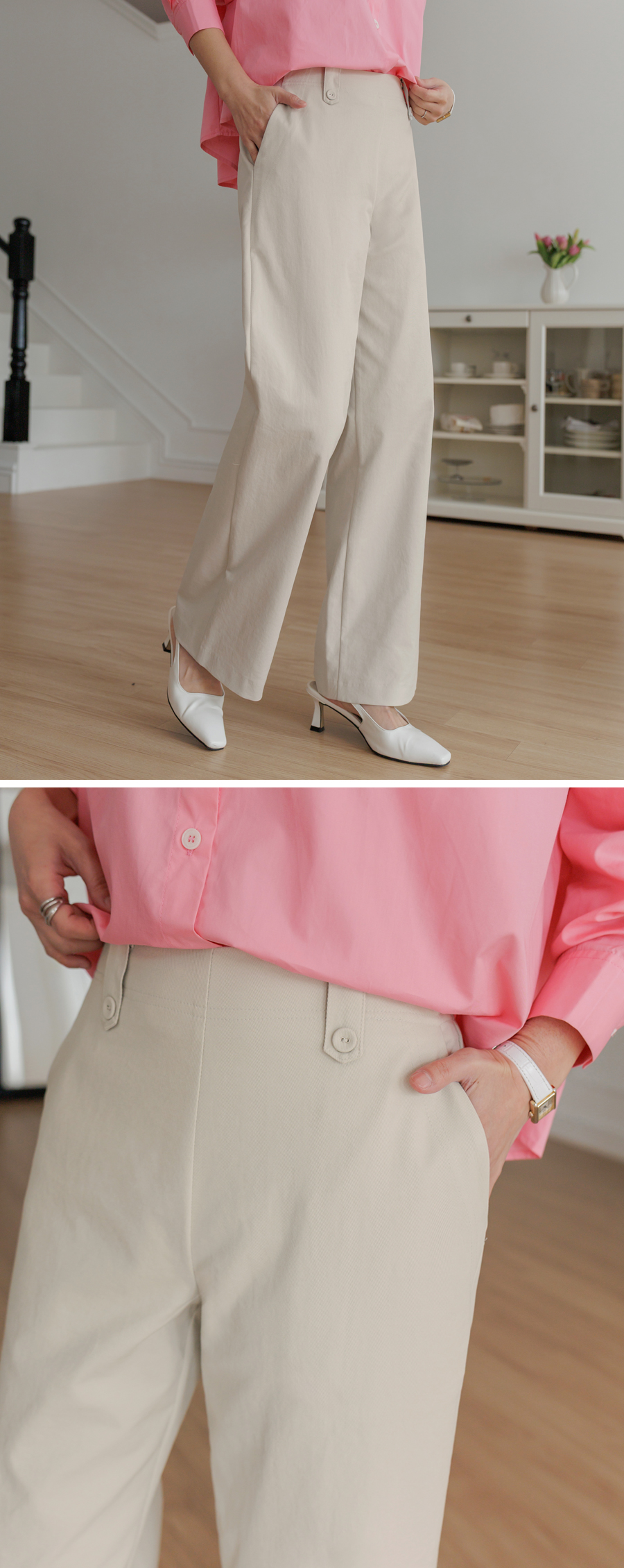 데일리 팬츠로 딱! 비조 디테일로 멋스러운 코튼 팬츠