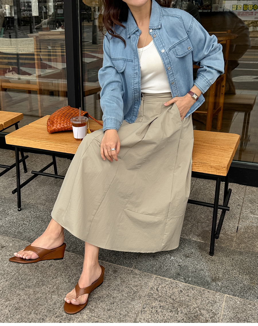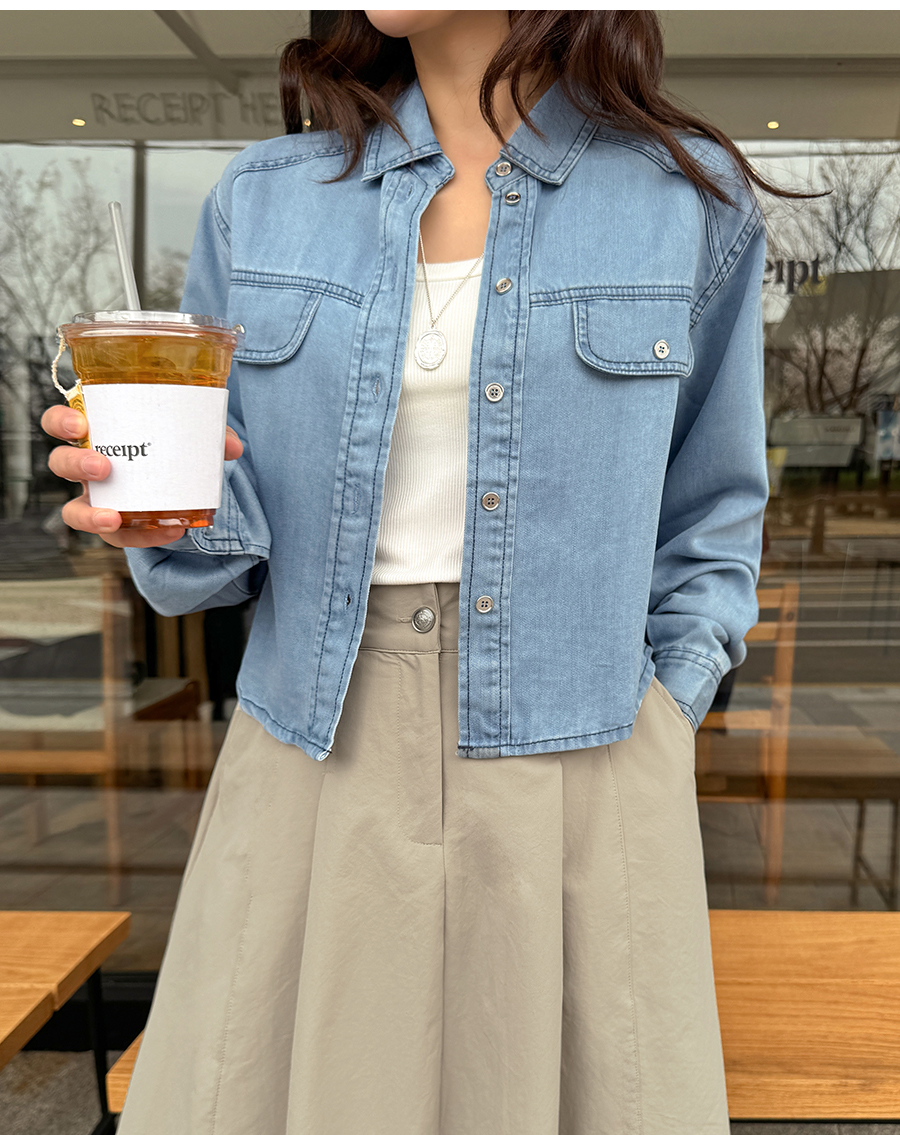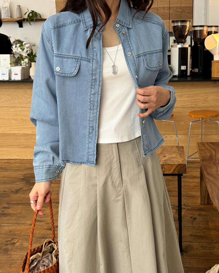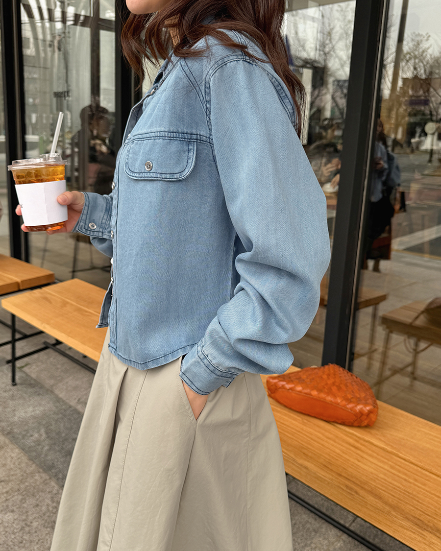 スムーズデニムセミクロップシャツ