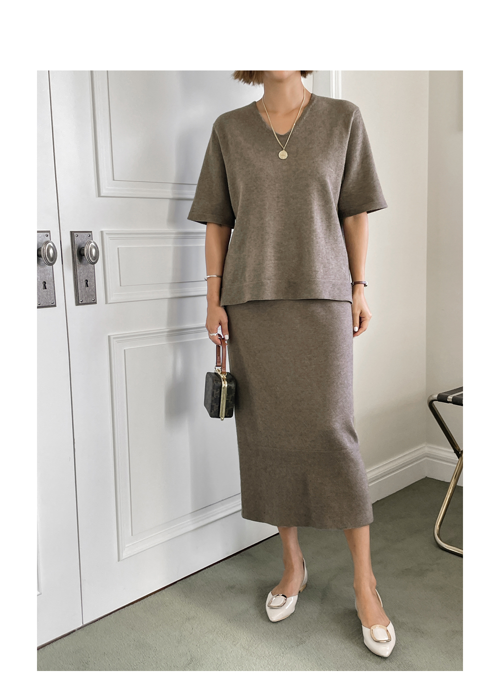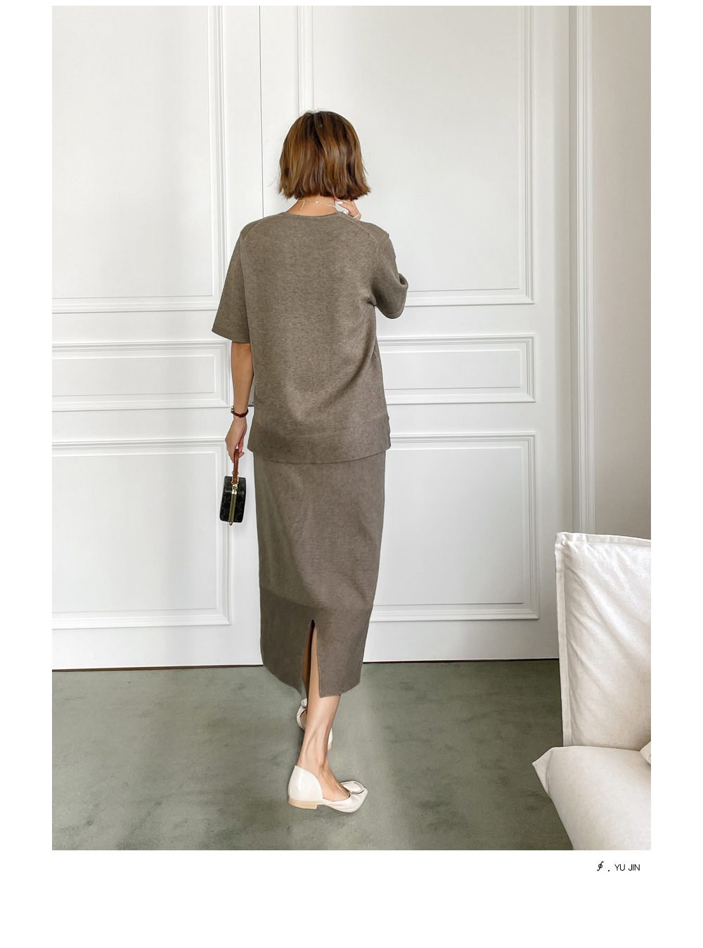 함께 코디된 '르보네 H라인 니트 스커트'와